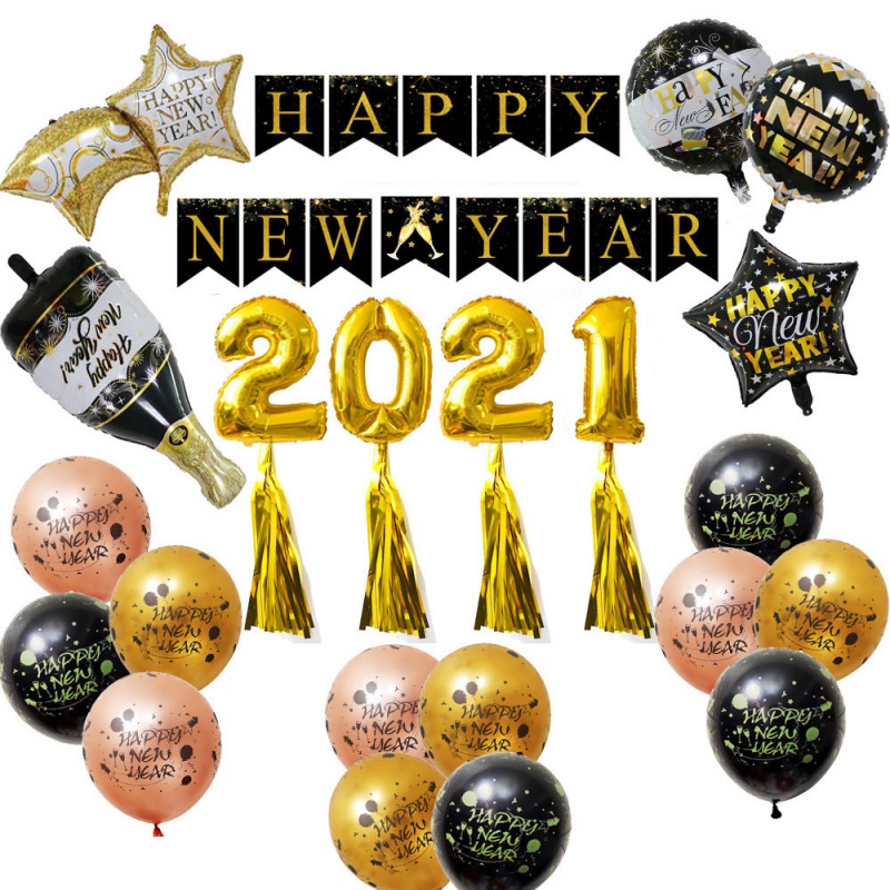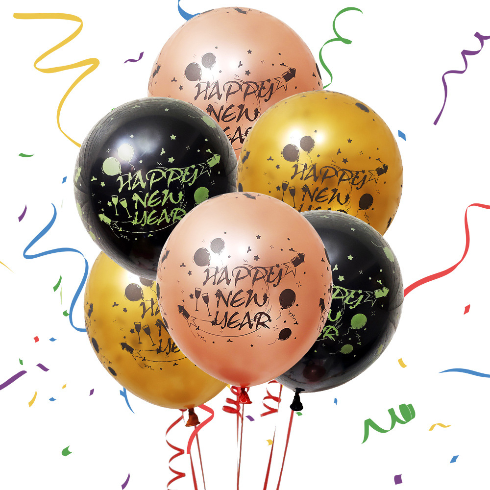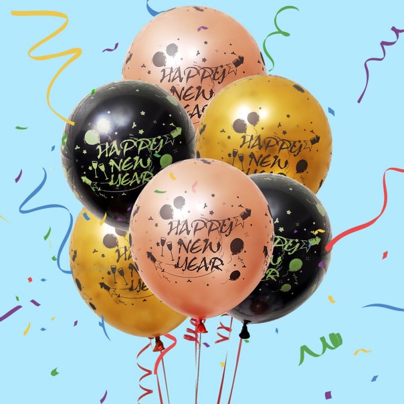 12 inch latex new year full print latex gold rose gold black 4 each