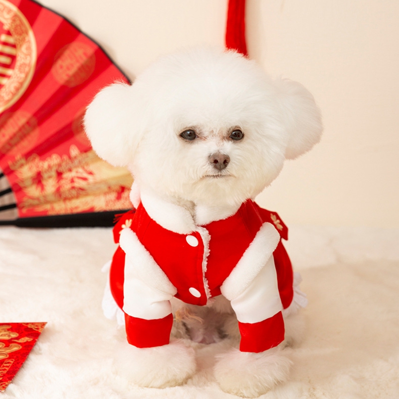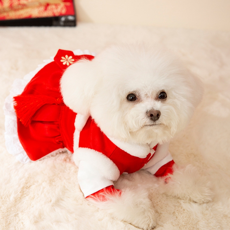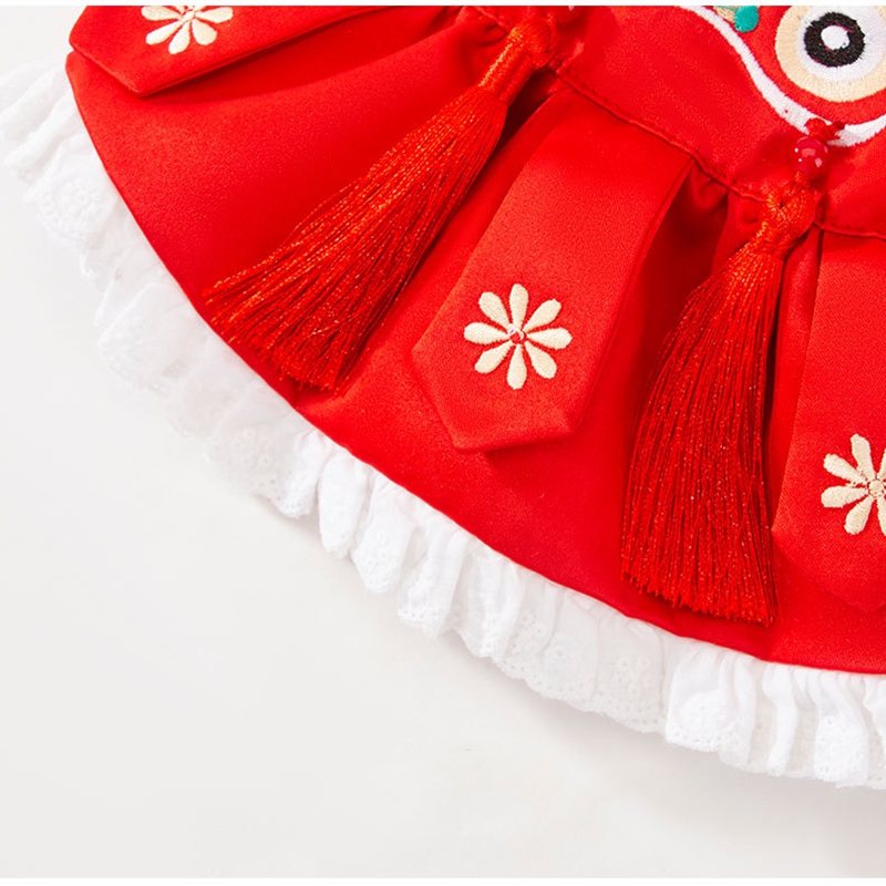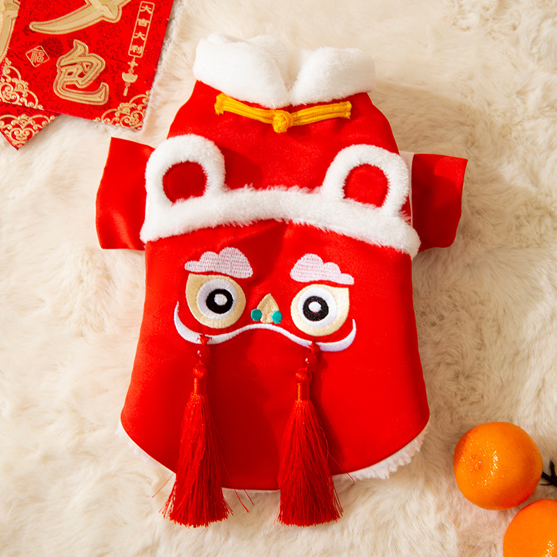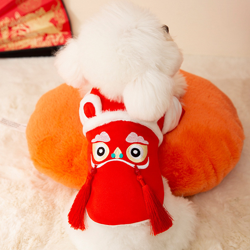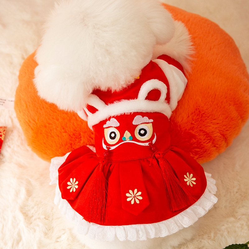 Celebrate Lunar New Year in authentic style with this Lion Dance Pet Outfit! Available in two designs—a red top with lion dance embroidery and a red dress with lace trims—each outfit features traditional Chinese lion dance details, vibrant red hues, and festive tassels. Perfect for Lunar New Year gatherings, these costumes embody prosperity and cultural heritage, ensuring your furry companion stands out with festive charm. Ideal for pet parents wanting to share the holiday spirit, this collection combines traditional craftsmanship, vibrant design, and Lunar New Year warmth.