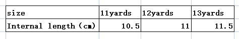 Size: The internal length of 11 yards is 10.5cm, the internal length of 12 yards is 11cm, and the internal length of 13 yards is 11.5cm