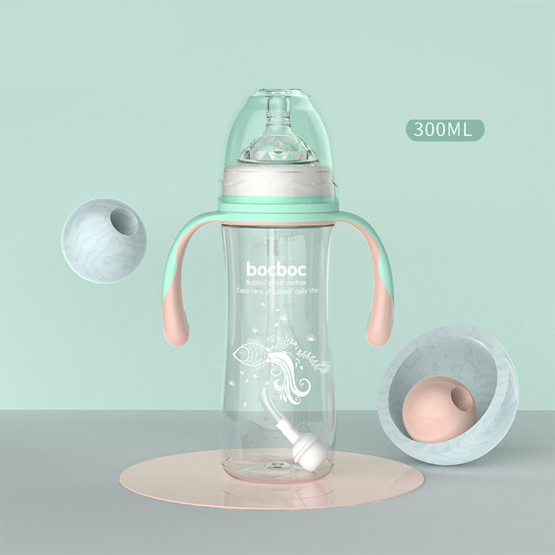Specification:Shape: ArcWhether with handle: With handleMaterial: PpCapacity:Pink-240ml, green-240ml, pink-300ml, green-300ml