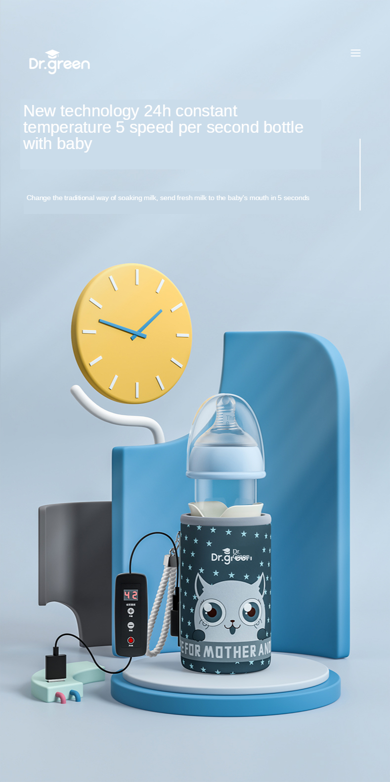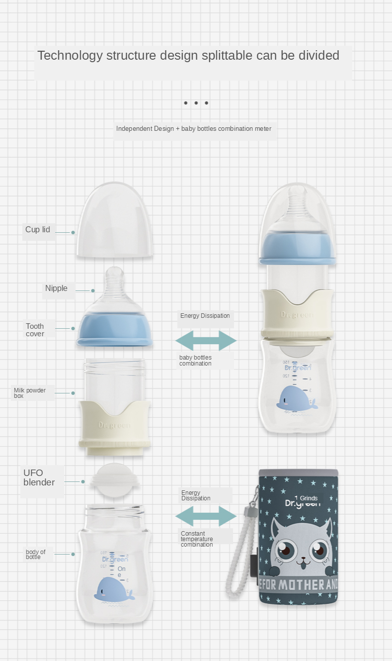 Baby bottle*1, cup cover*1, usb charging cable*1. Manual*1