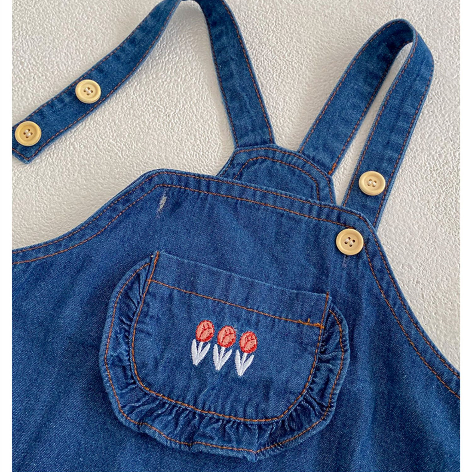 Color classification: striped top (95% cotton 5% spandex) denim romper (100% cotton)