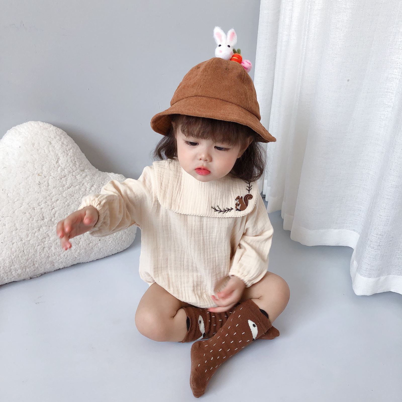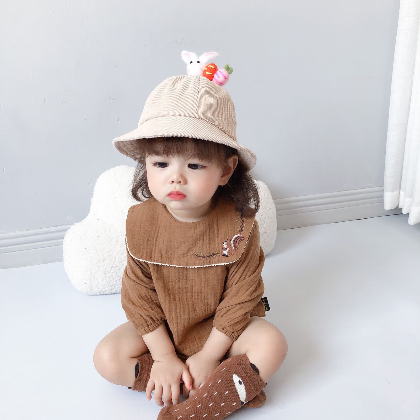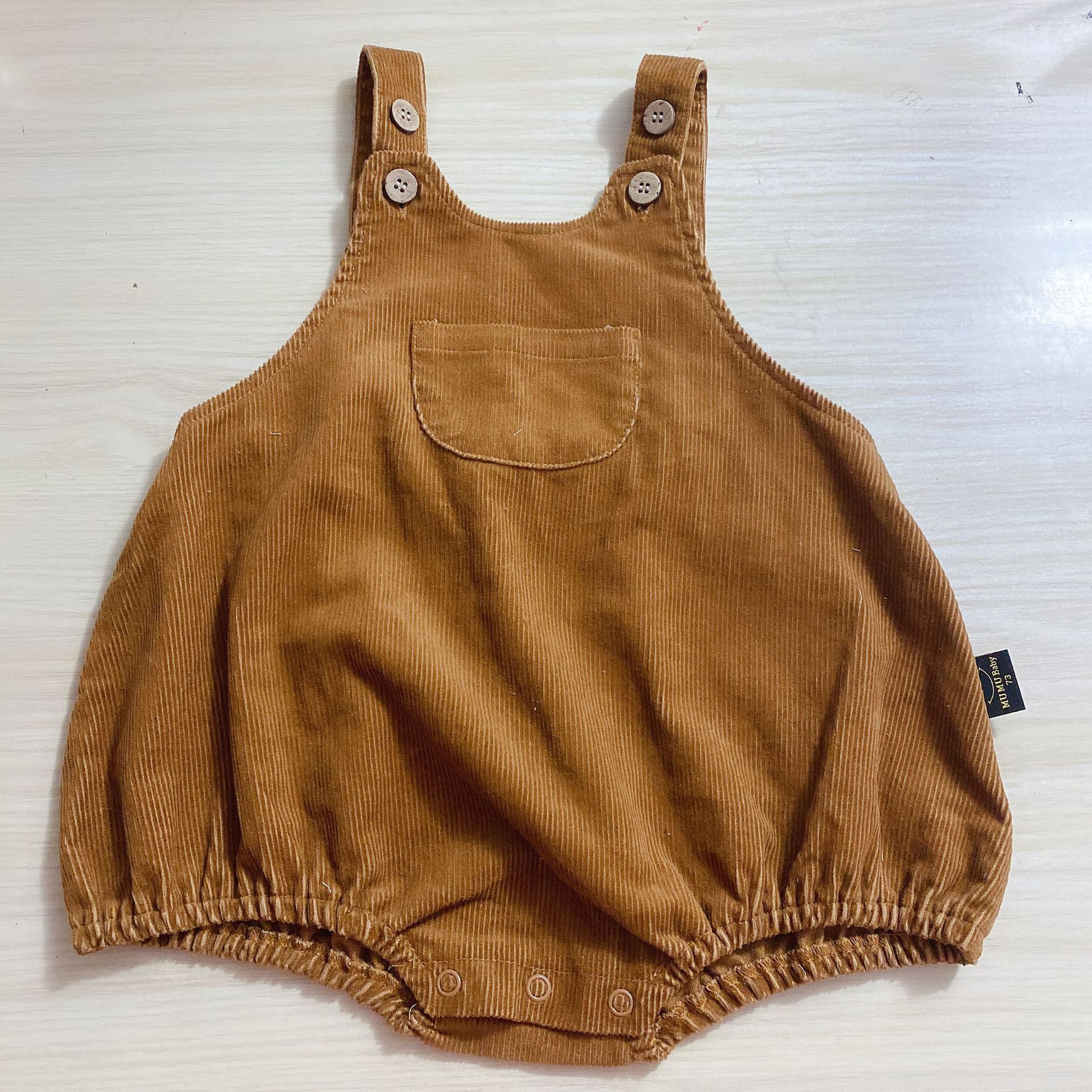 Color: beige triangle romper, coffee triangle romper, beige corduroy overalls, coffee corduroy overalls