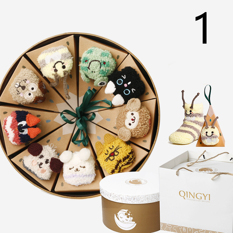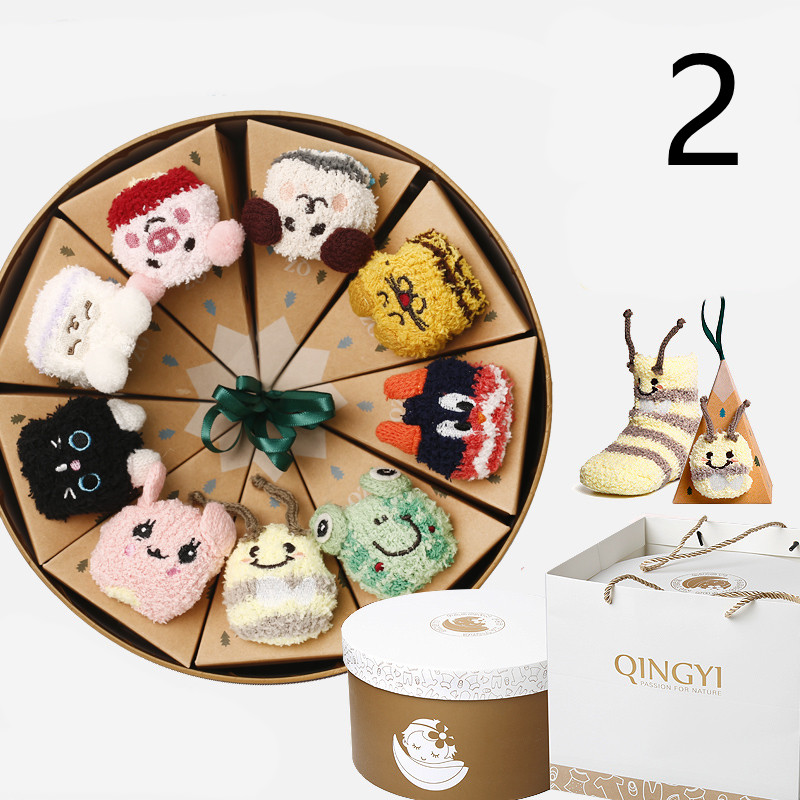 Style2: Women's models: 9 pairs of autumn and winter coral fleece (gift box) to send a blanket
