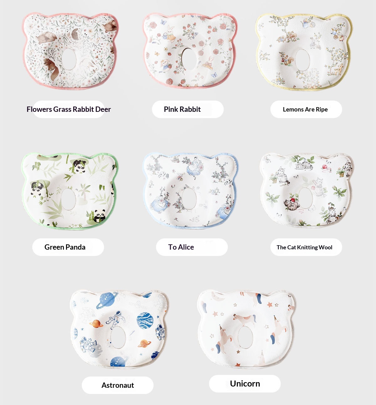 Colors: Standard—Cute Strawberry Rabbit—Shaping Pillow; Standard—Astronaut—Little Bear Shaping Pillow; Standard—Unicorn—Little Bear Shaping Pillow; Standard—Rabbit and Deer with Floral Pattern—Shaping Pillow; Standard—Green Bamboo Panda—Shaping Pillow; Standard—Lemons Are Ripe—Shaping Pillow; Standard—Knitted Cat—Shaping Pillow; Standard—To Elise—Shaping Pillow