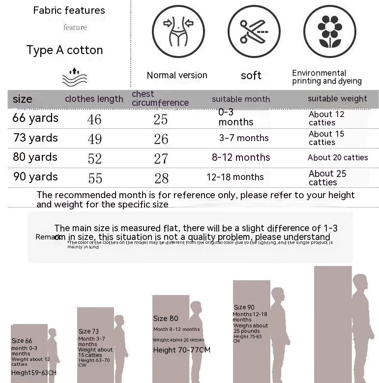 Suitable height: size 66 is suitable for 59-63CM 5.50 kg-7.00 kg, size 73 is suitable for 63-70CM 7.00 kg-8.00 kg, size 80 is suitable for 70-75CM 8.00 kg-10.00 kg, size 90 is suitable for 75-85CM 10.00 kg-12.50 kg