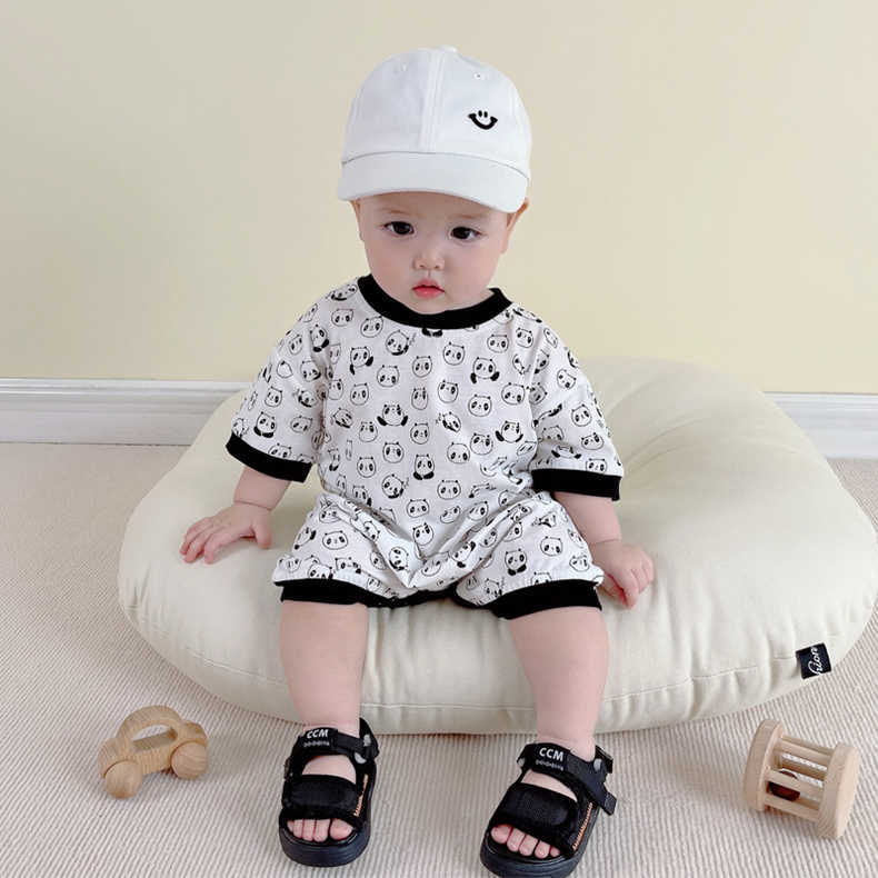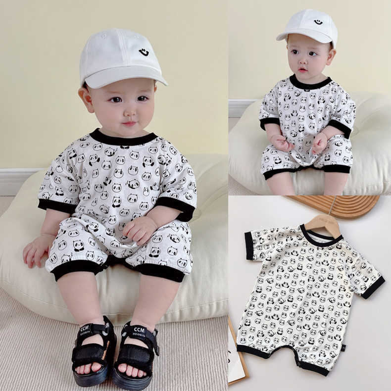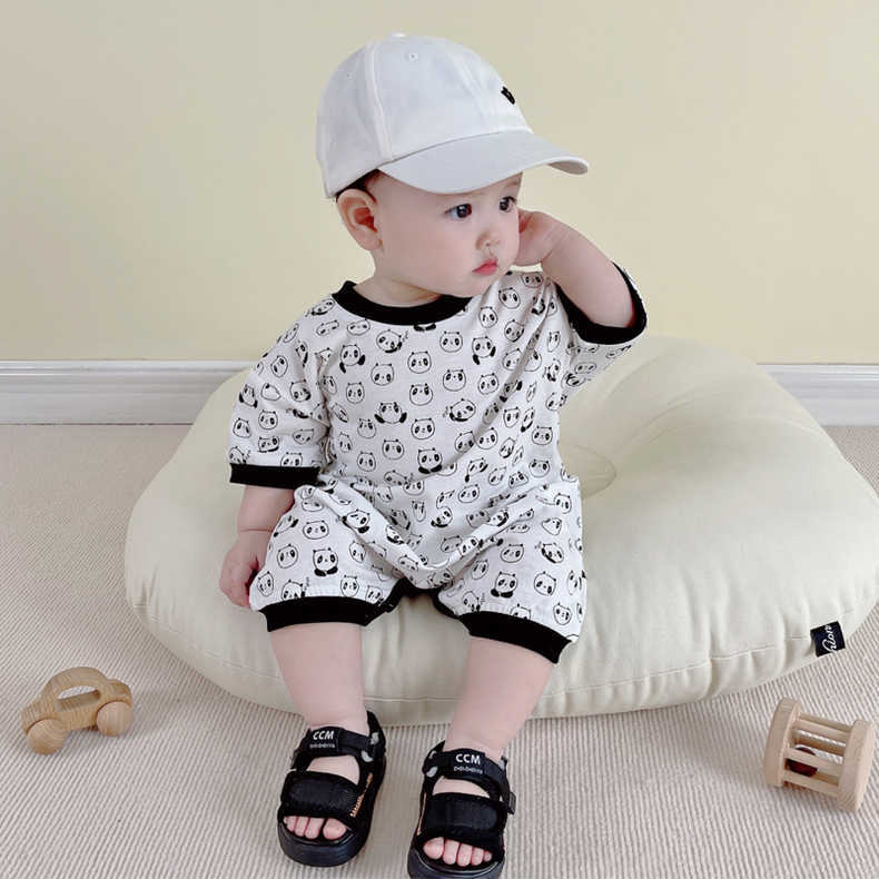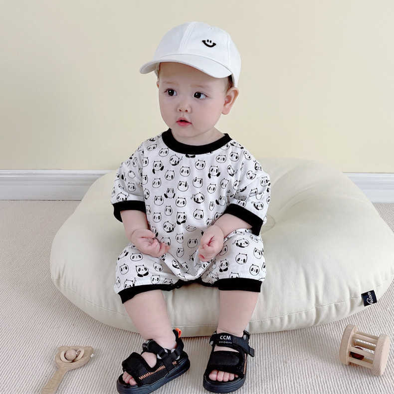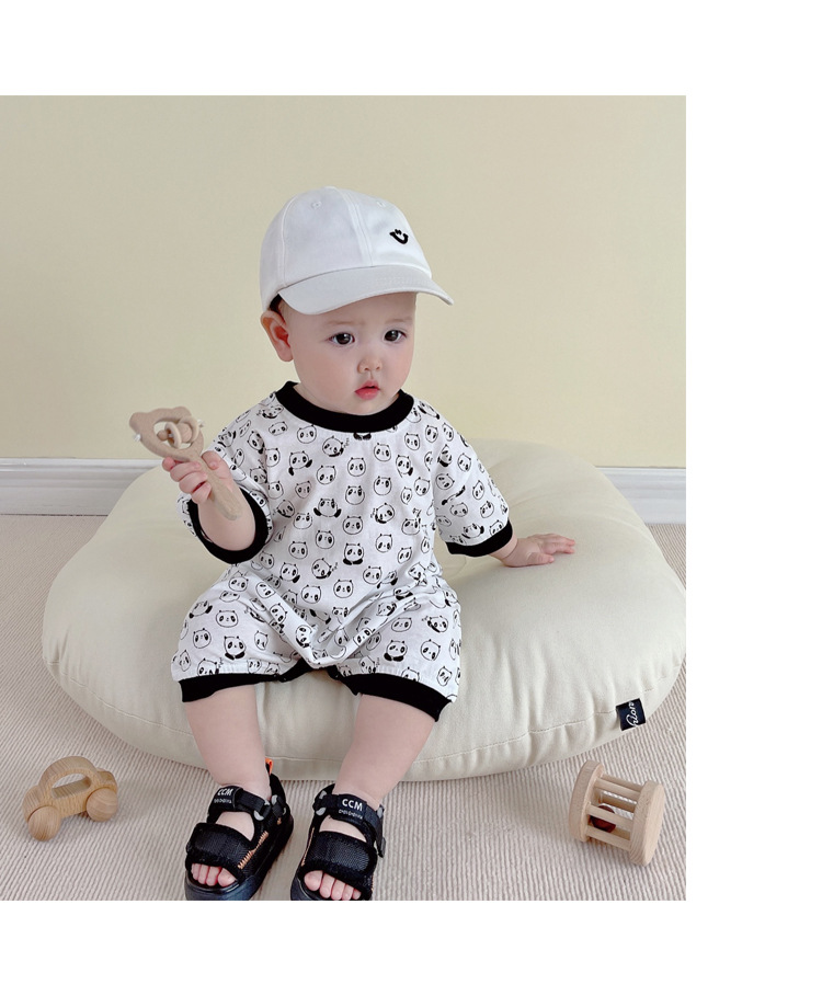 Color: H084 White & allover printed (Panda half sleeve romper)