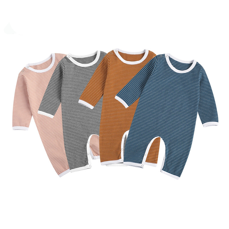 Newborn Rompers Striped Print Long Sleeve Crew Neck Jumpsuit