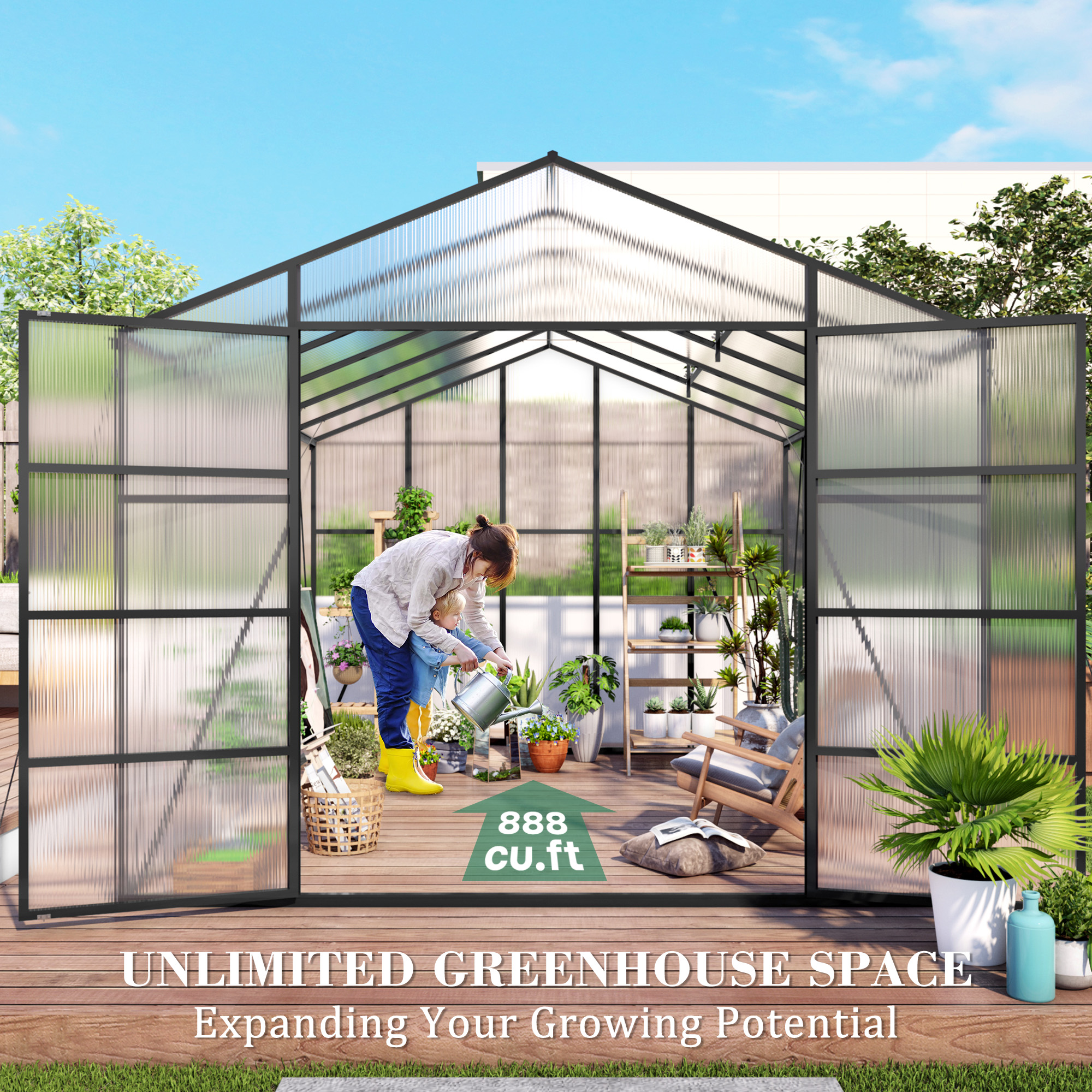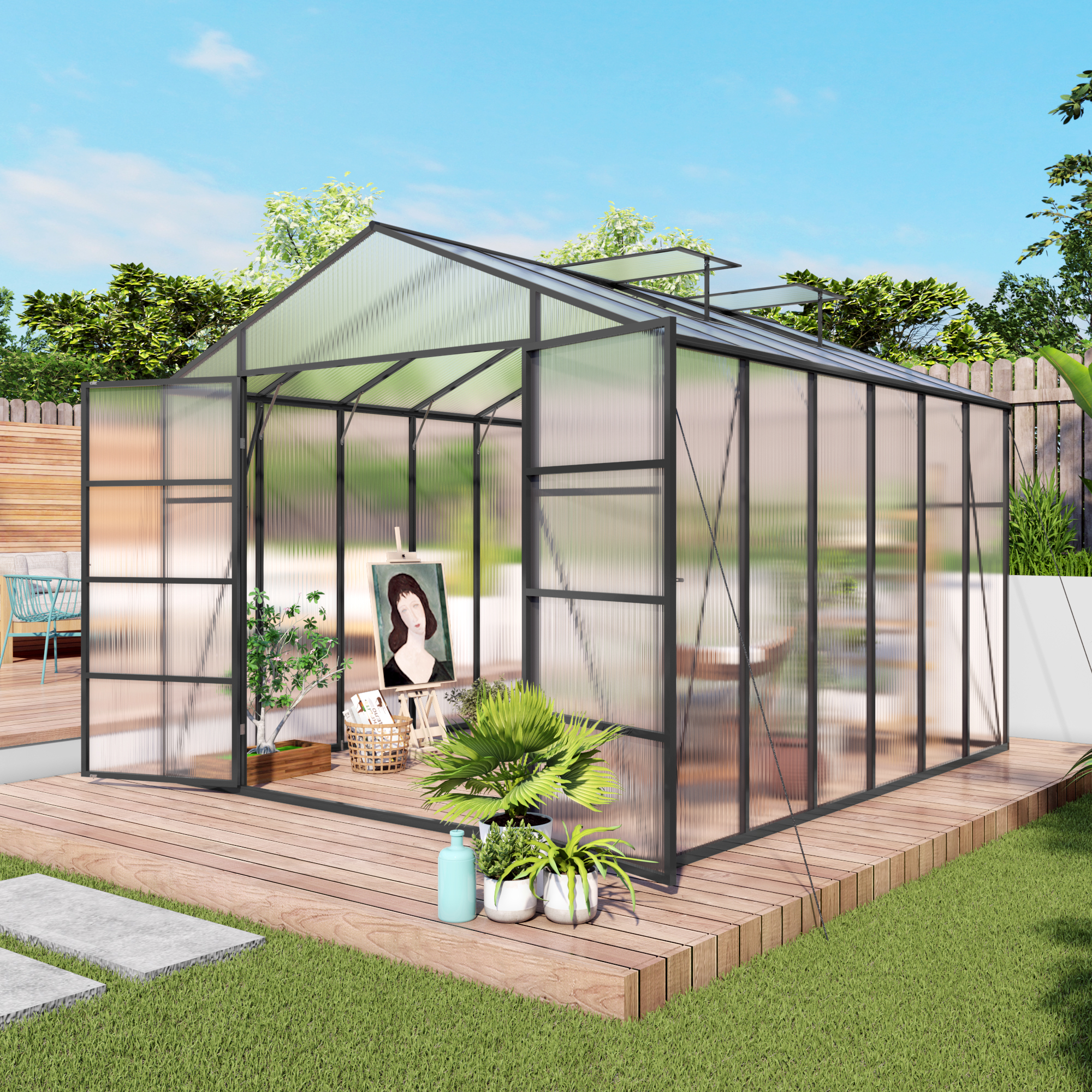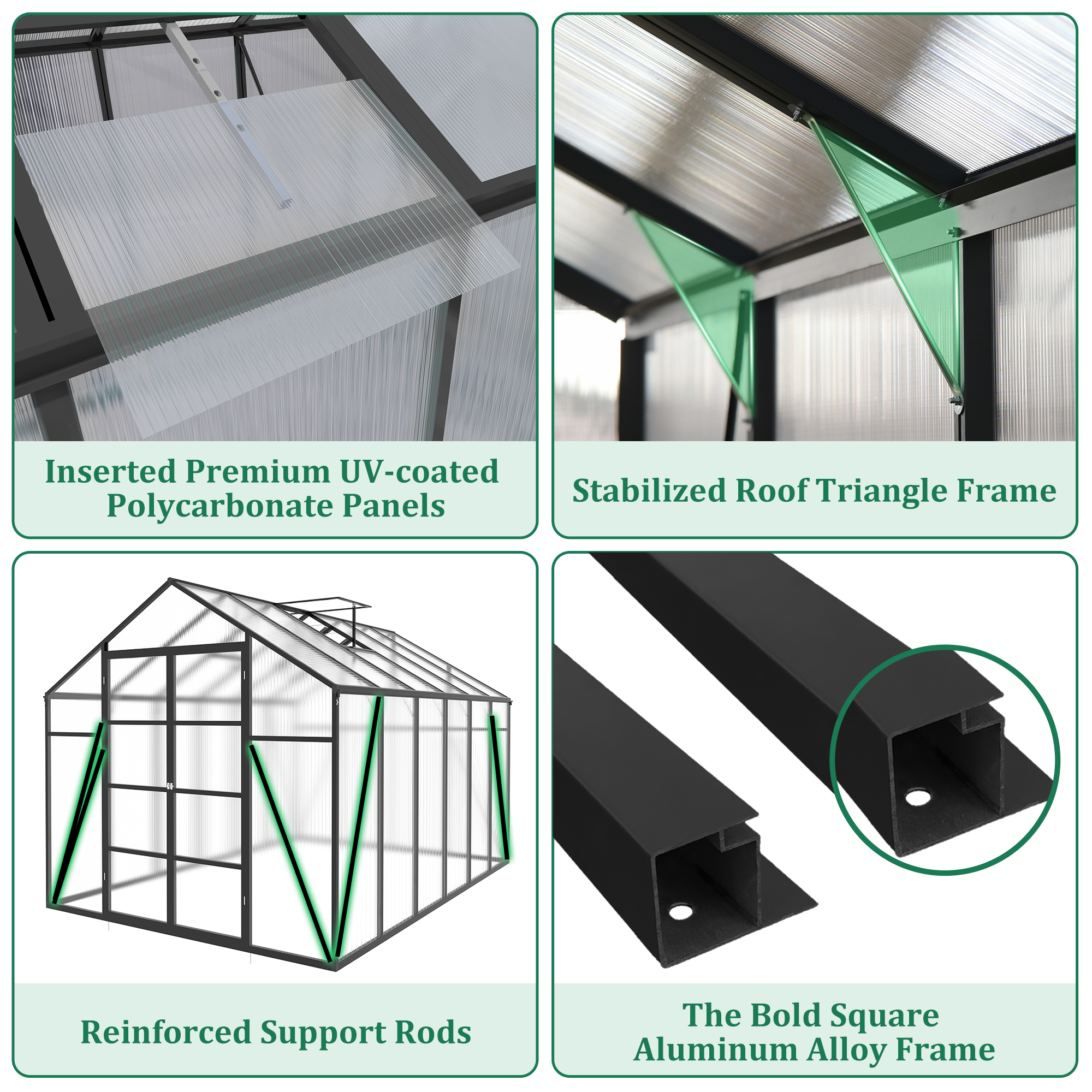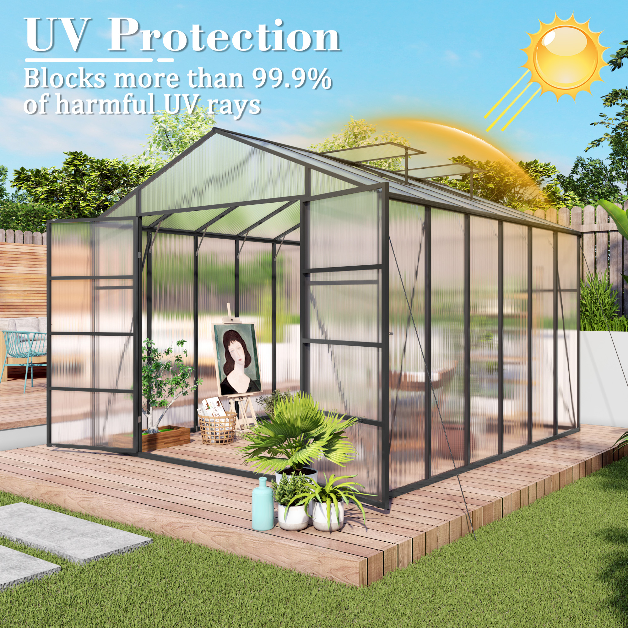 Product Name:Newly marketed Gain height windproofaluminum greenhouse 10x12 FT Polycarbonate Greenhouse Raised Base and Anchor Aluminum Heavy Duty Walk-in Greenhouses for Outdoor Backyard in All Season