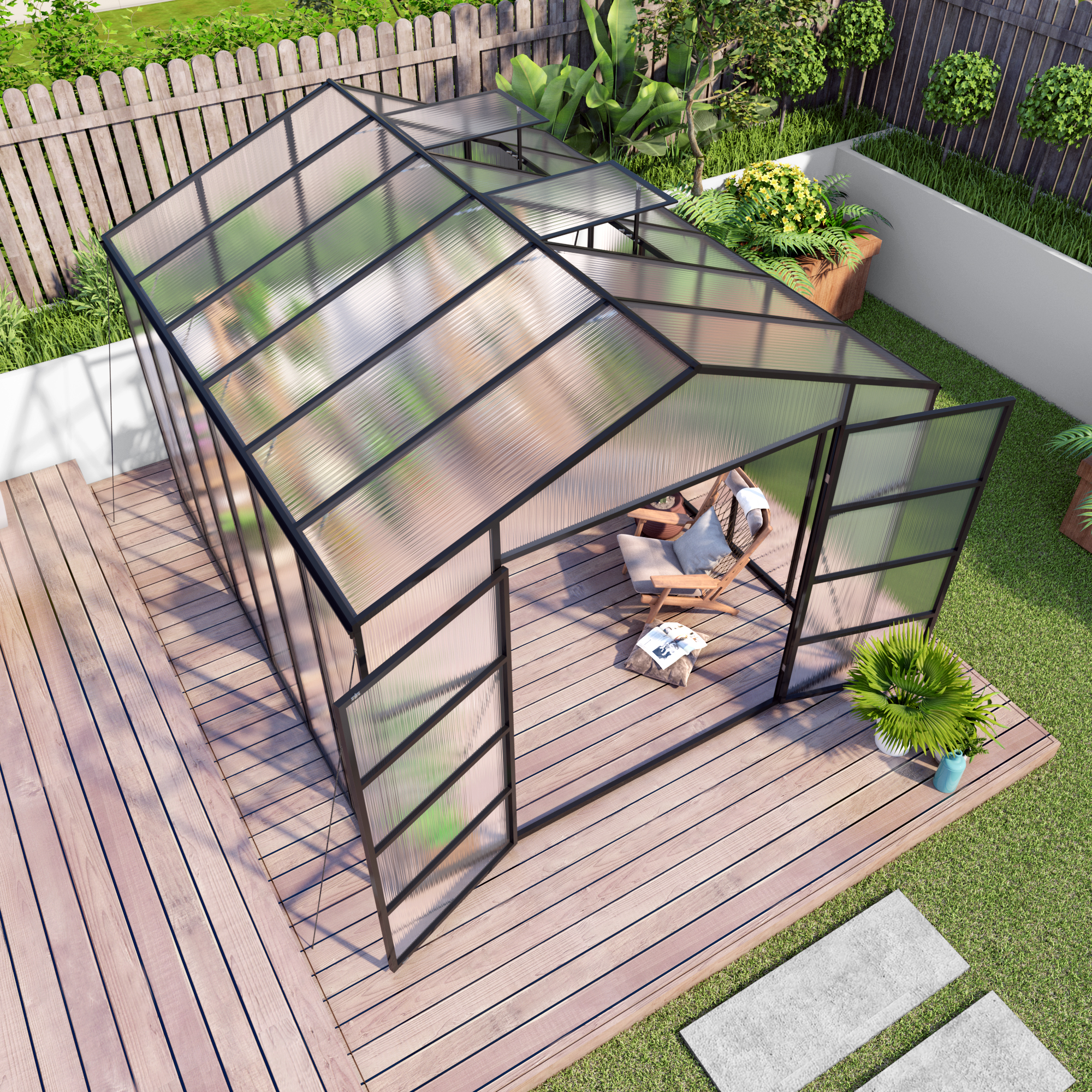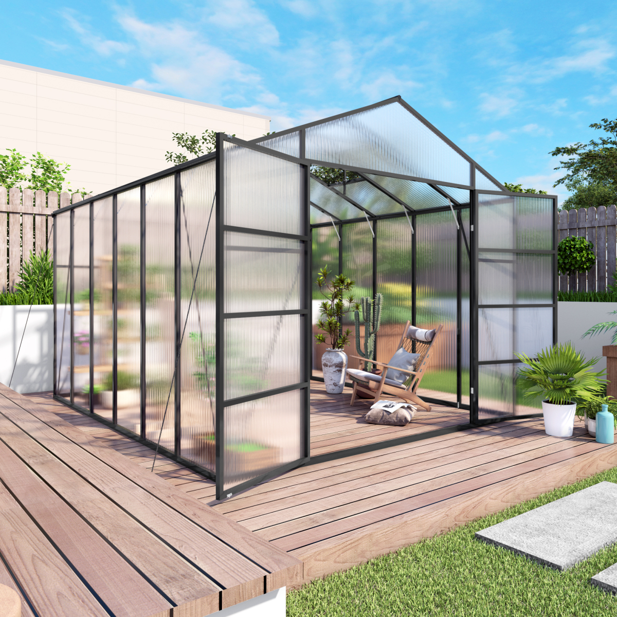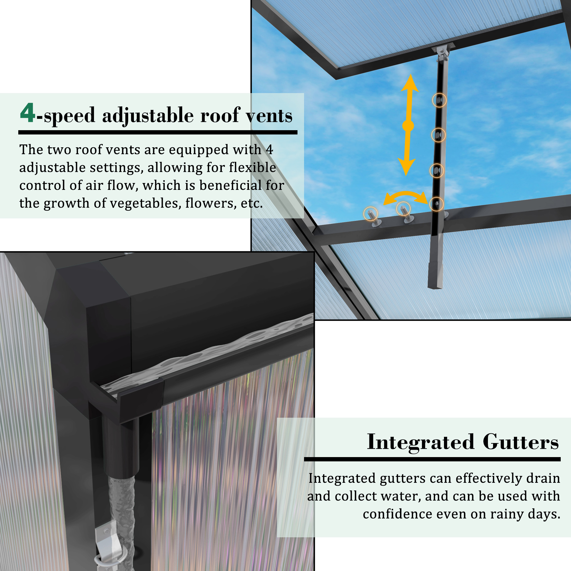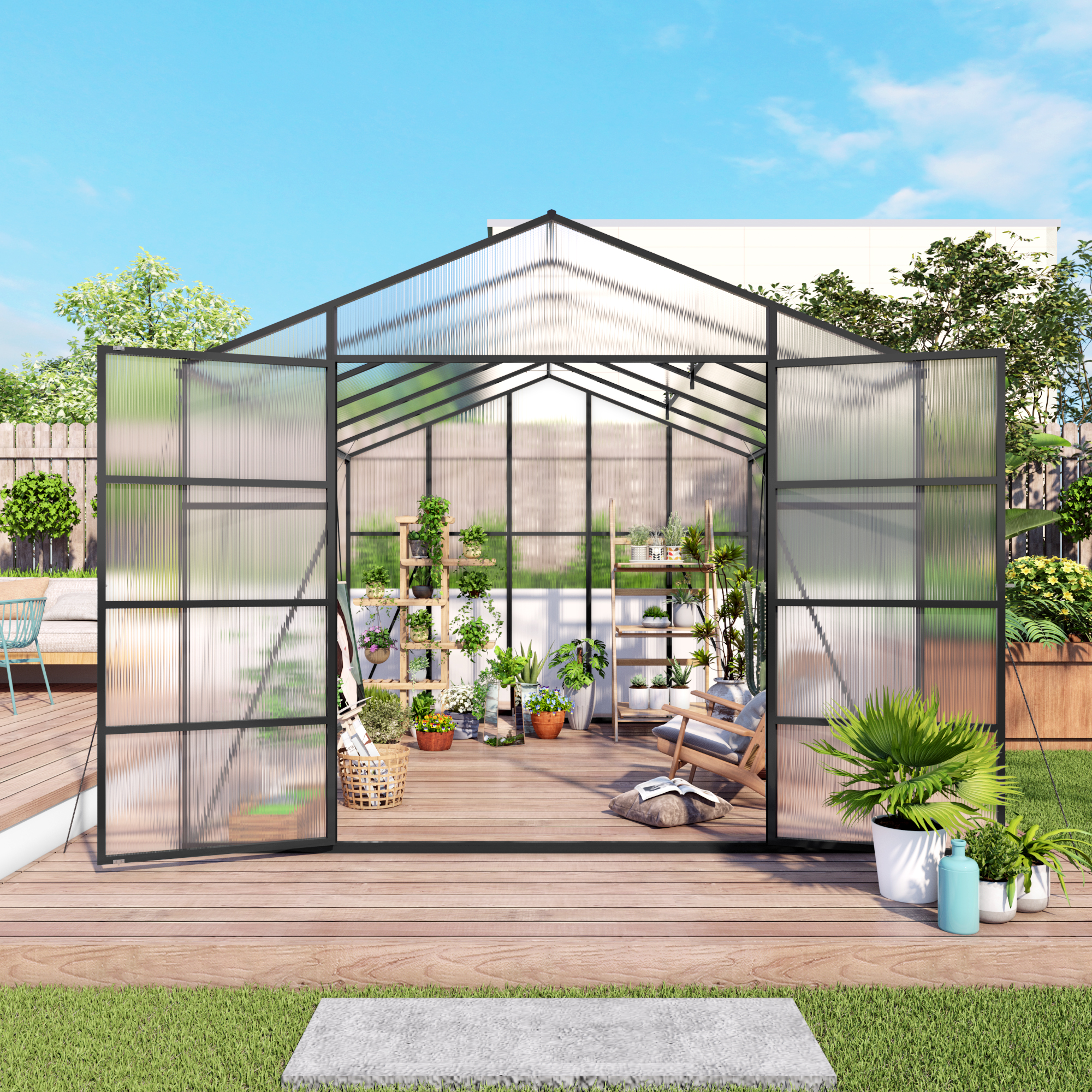 Product Name:Newly marketed Gain height windproofaluminum greenhouse 10x12 FT Polycarbonate Greenhouse Raised Base and Anchor Aluminum Heavy Duty Walk-in Greenhouses for Outdoor Backyard in All Season
