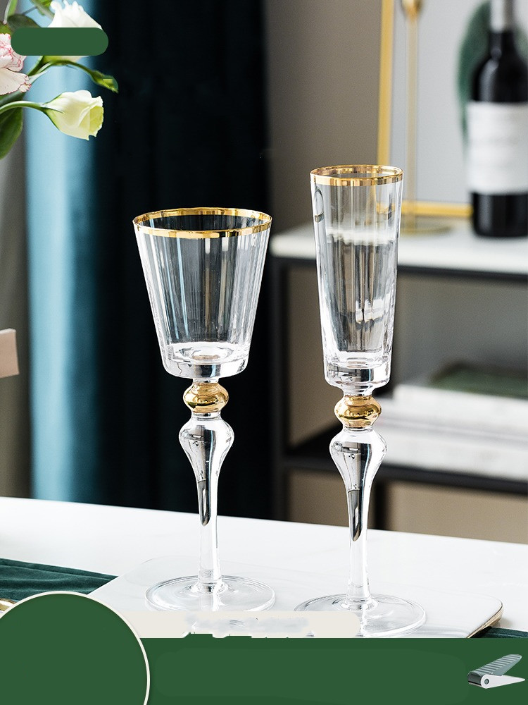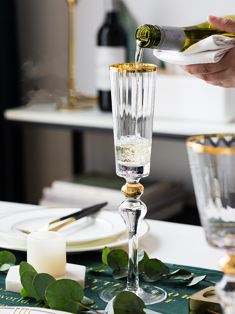Color classification: gold vertical pattern champagne glass, gold vertical pattern red wine glass