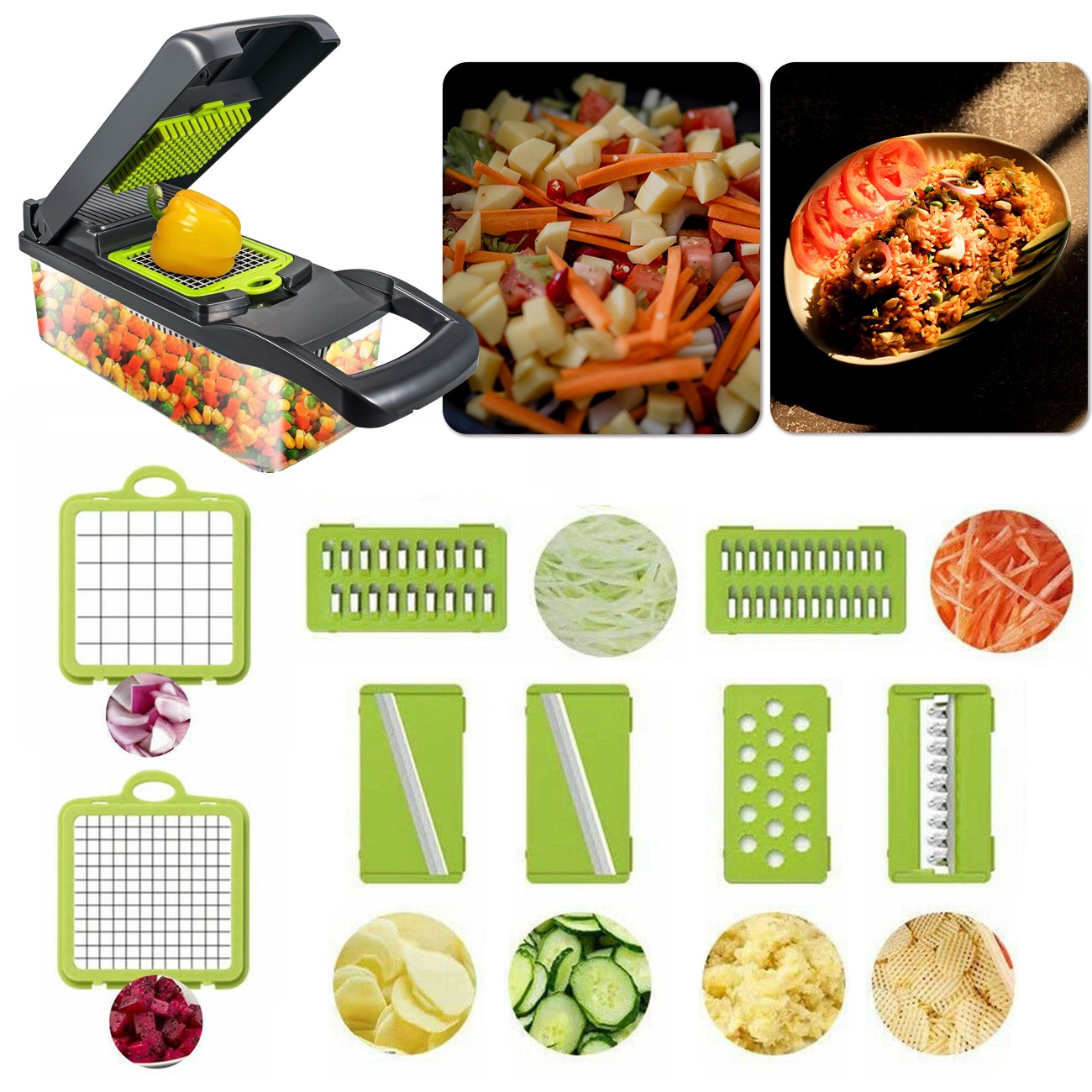 GemüsehobelAusgestattet mit 3mm Zerkleinerungsform, 4mm Zerkleinerungsform Klingen 1 Knoblauchzerkleinerer, wählen Sie eine andere Gemüseform je nach Ihren |