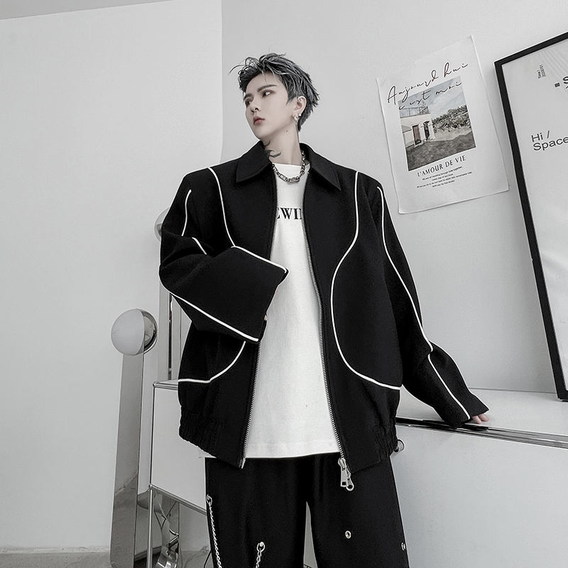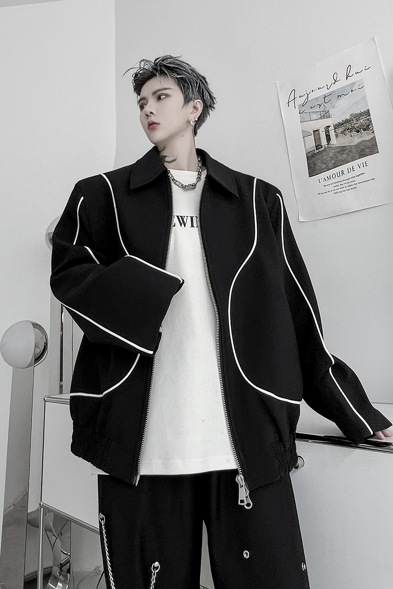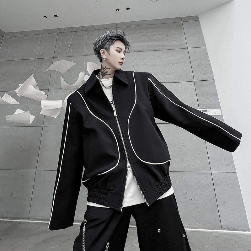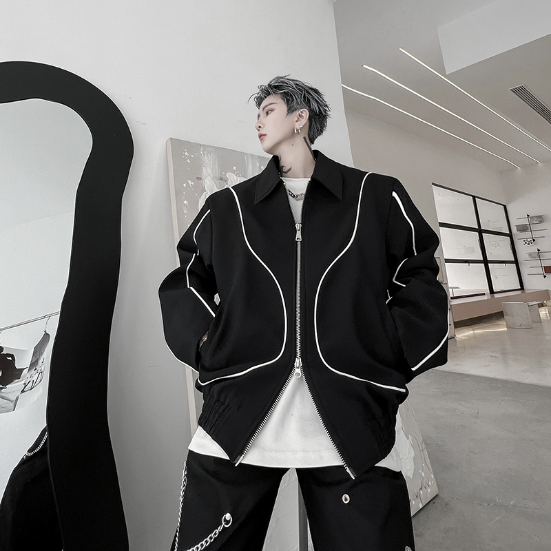 Niche Clash Of Colors Double Zipper Design Sense Jacket Men