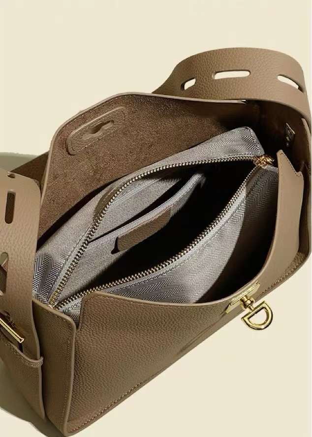 Internal bag structure: zippered hidden pocket, phone pocket, compartment with zippered pocket
