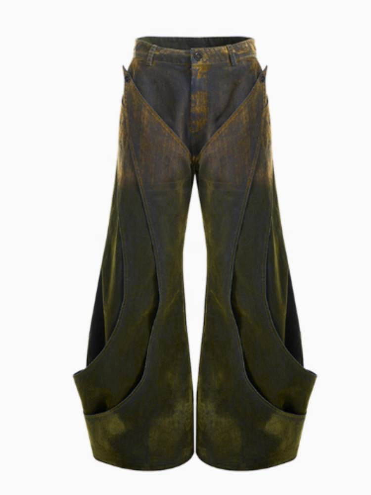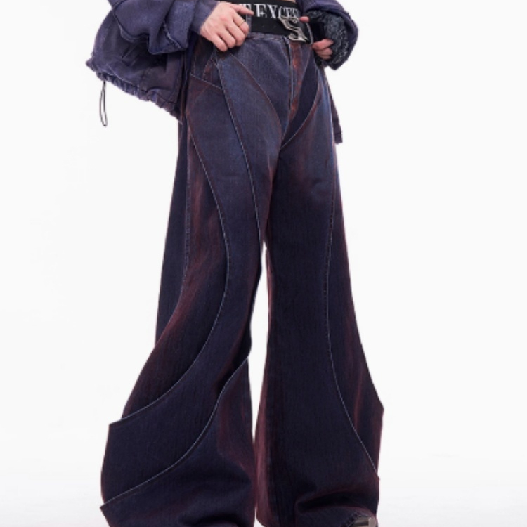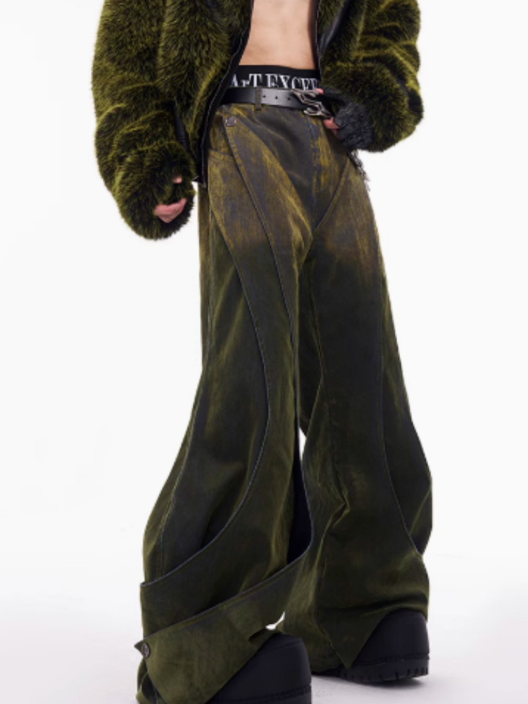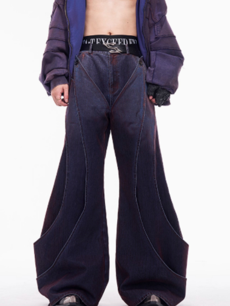 Niche Deconstruction Flocking Jeans Men's Autumn And Winter Brushed Gradient