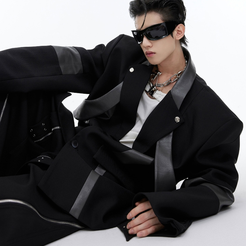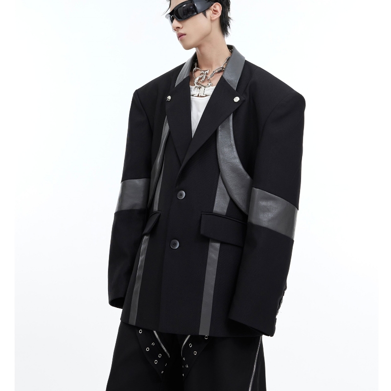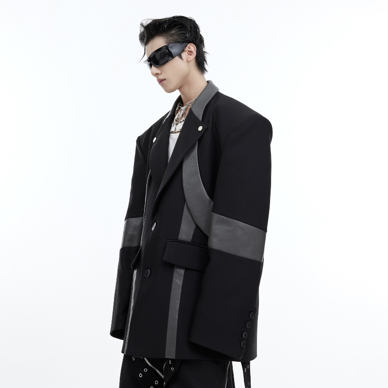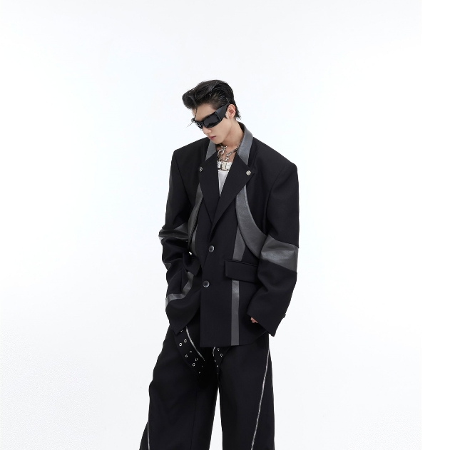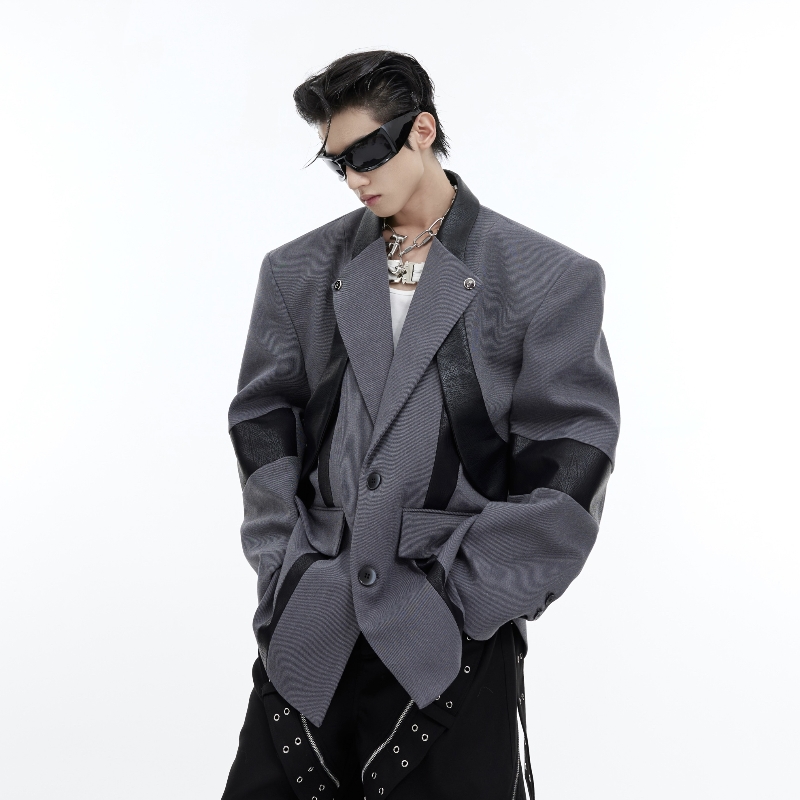 Niche Deconstruction Three-dimensional Stitching Padded Shoulder Suit Jacket