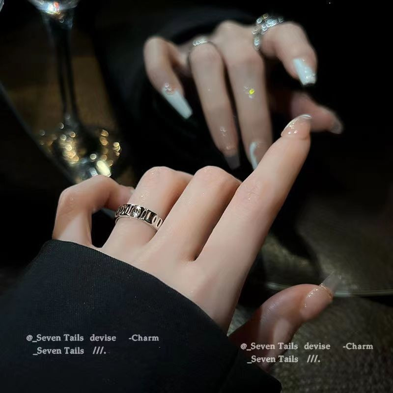 Niche Design Irregular Black Zircon Ring, Dark Punk Style Adjustable Open Band For Men Women