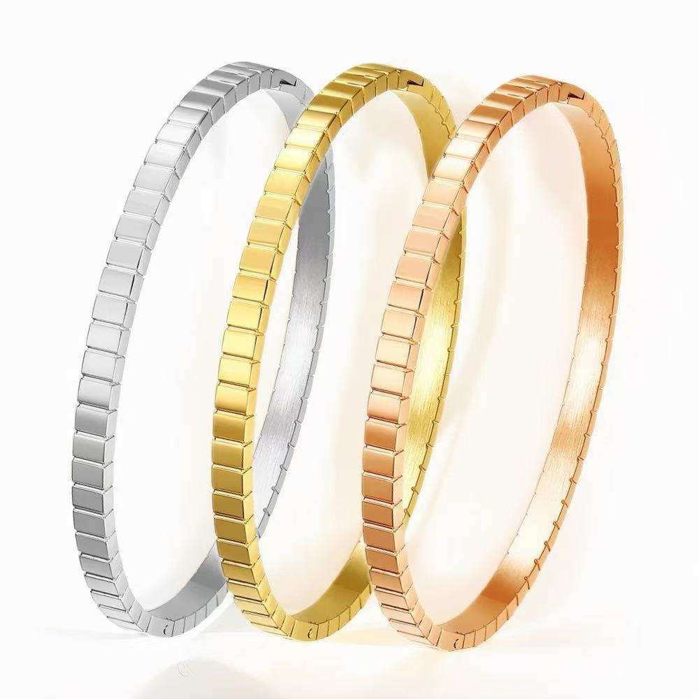 Colors: 40-B-7 steel-colored checkered bracelet, 40-B-8 gold-colored checkered bracelet