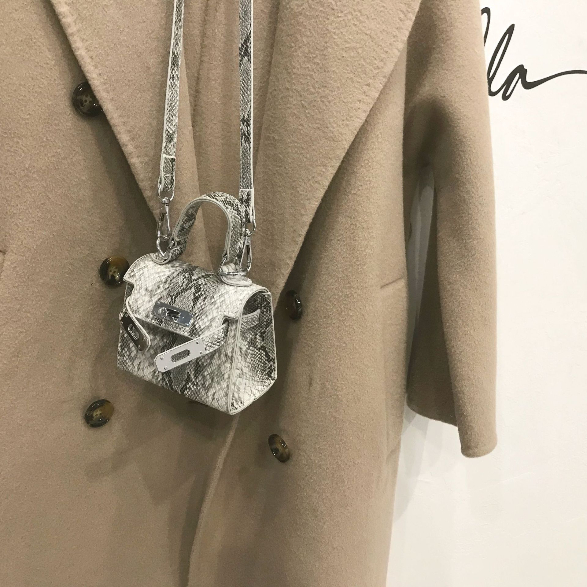 Color; blue, black, snake pattern beige