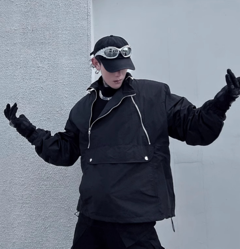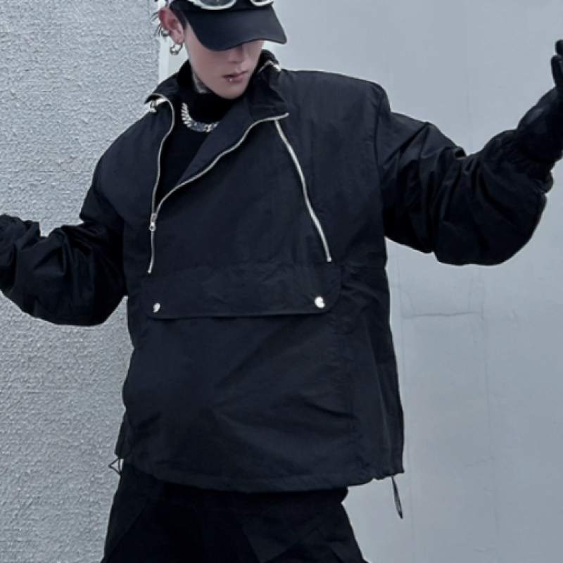 Niche Double Zipper Stand Collar Shell Jacket Jacket