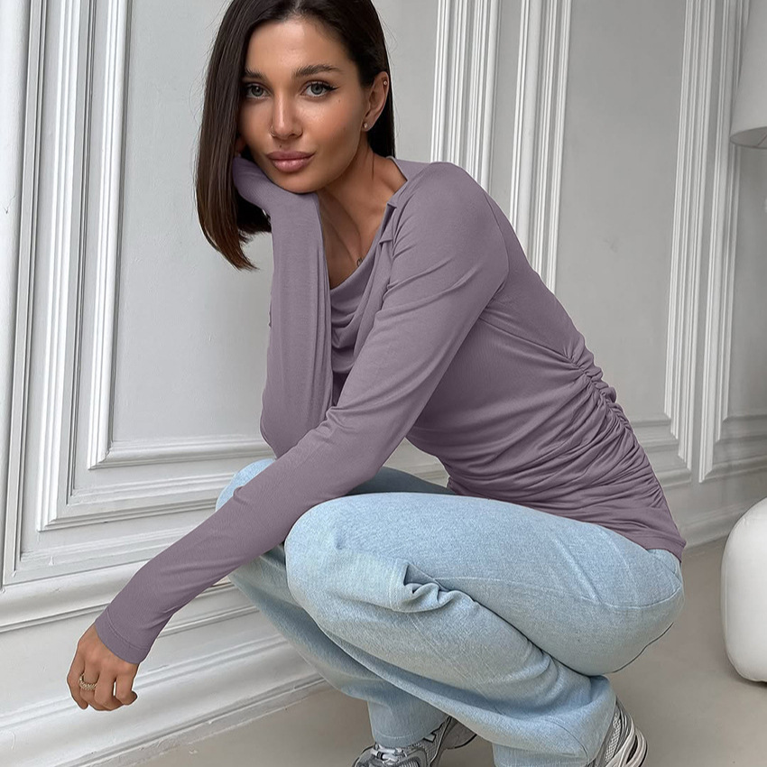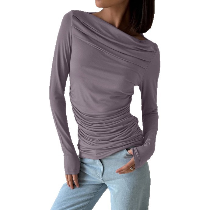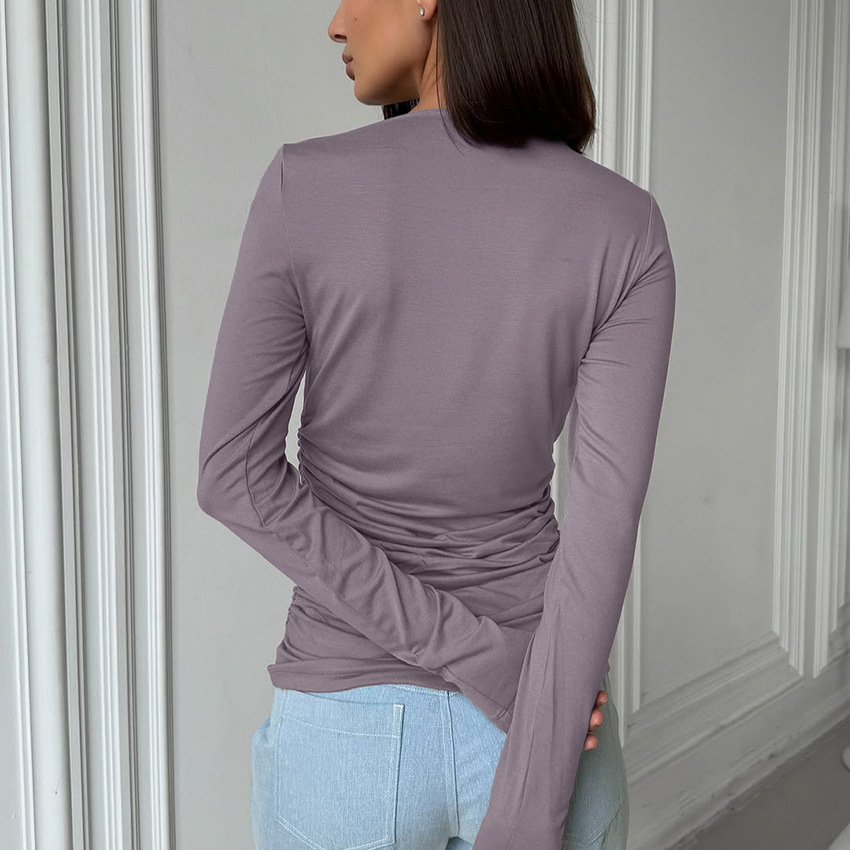 Niche Gathered Waist Regular Shoulder Long Sleeve T-shirt