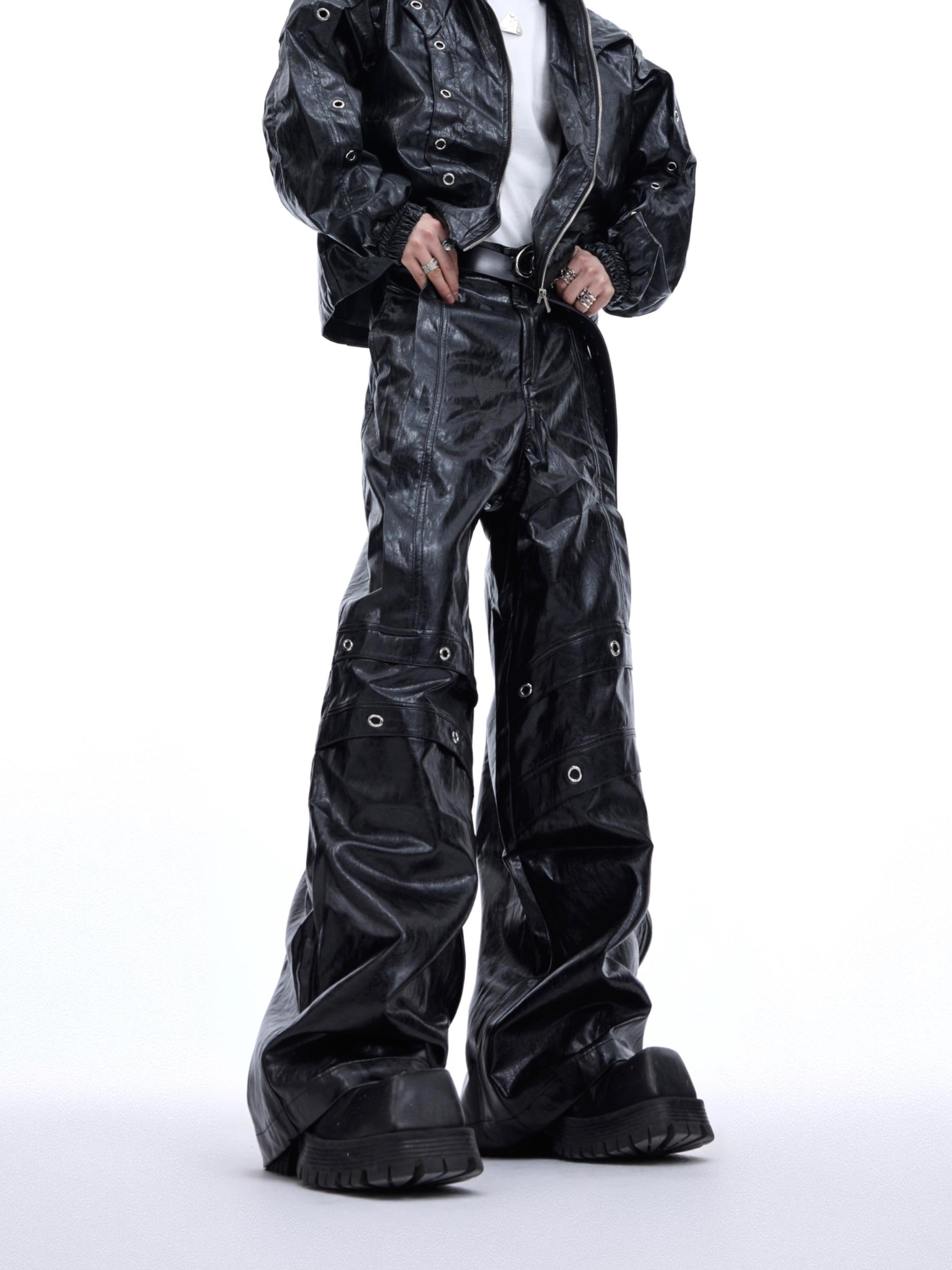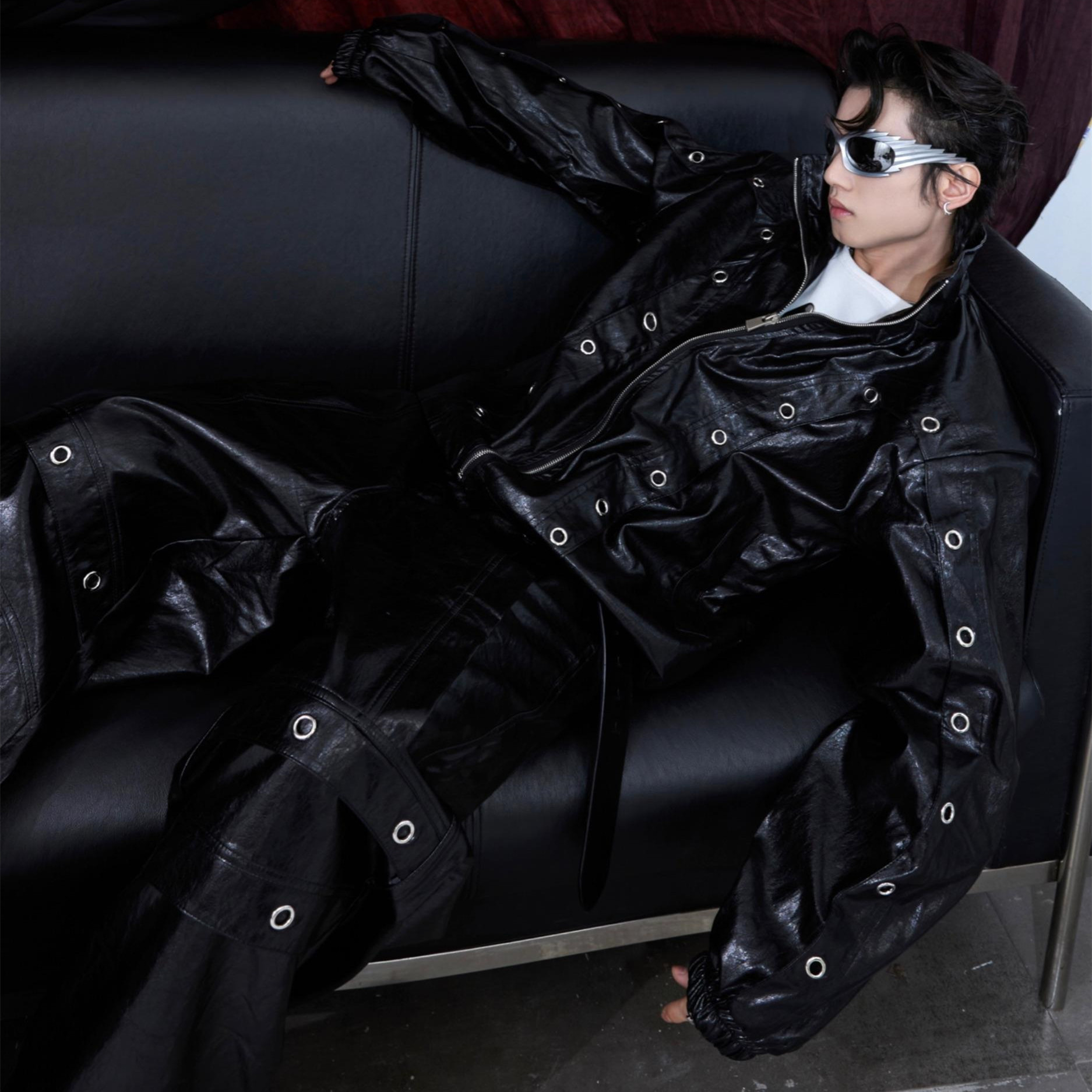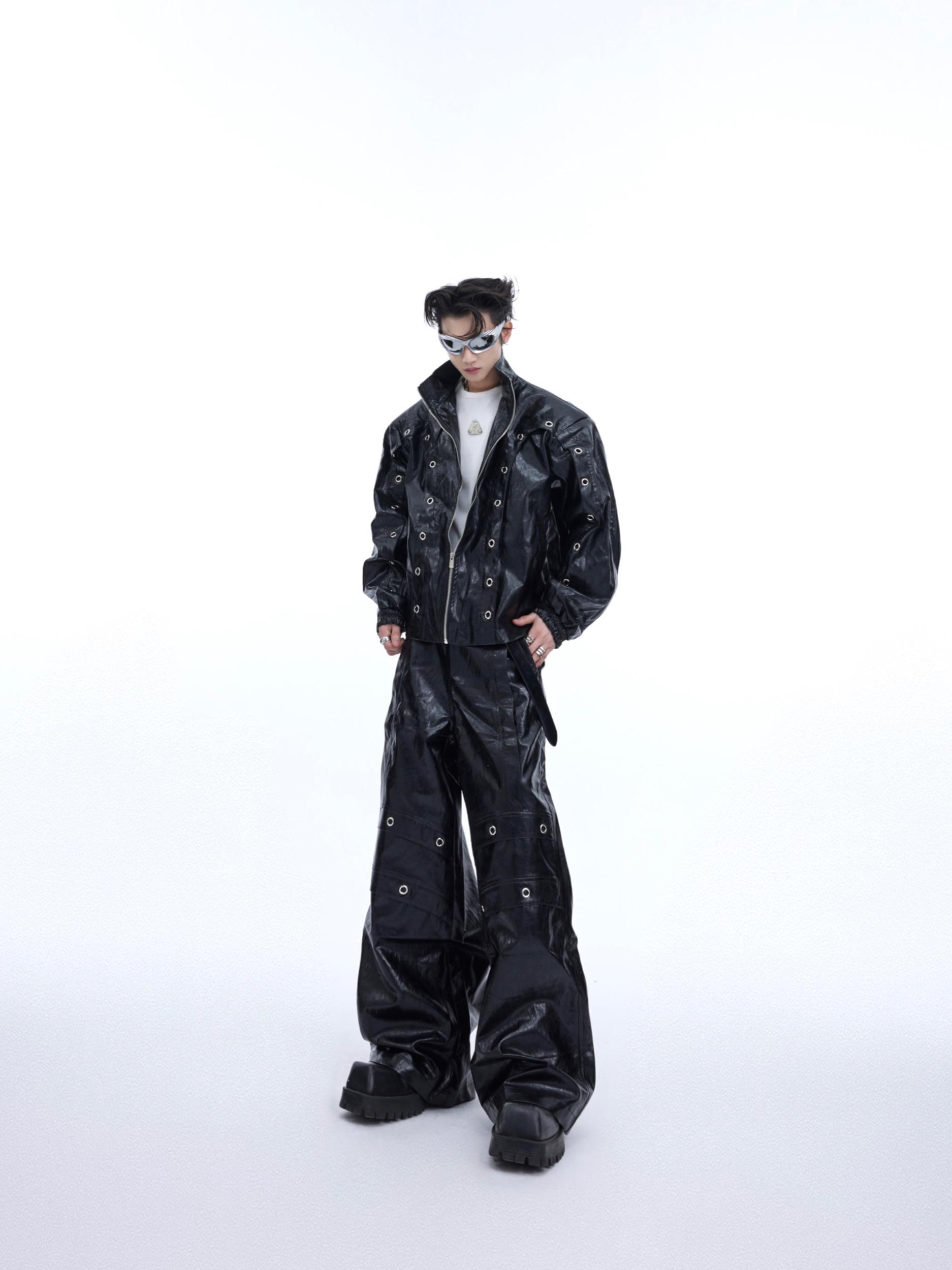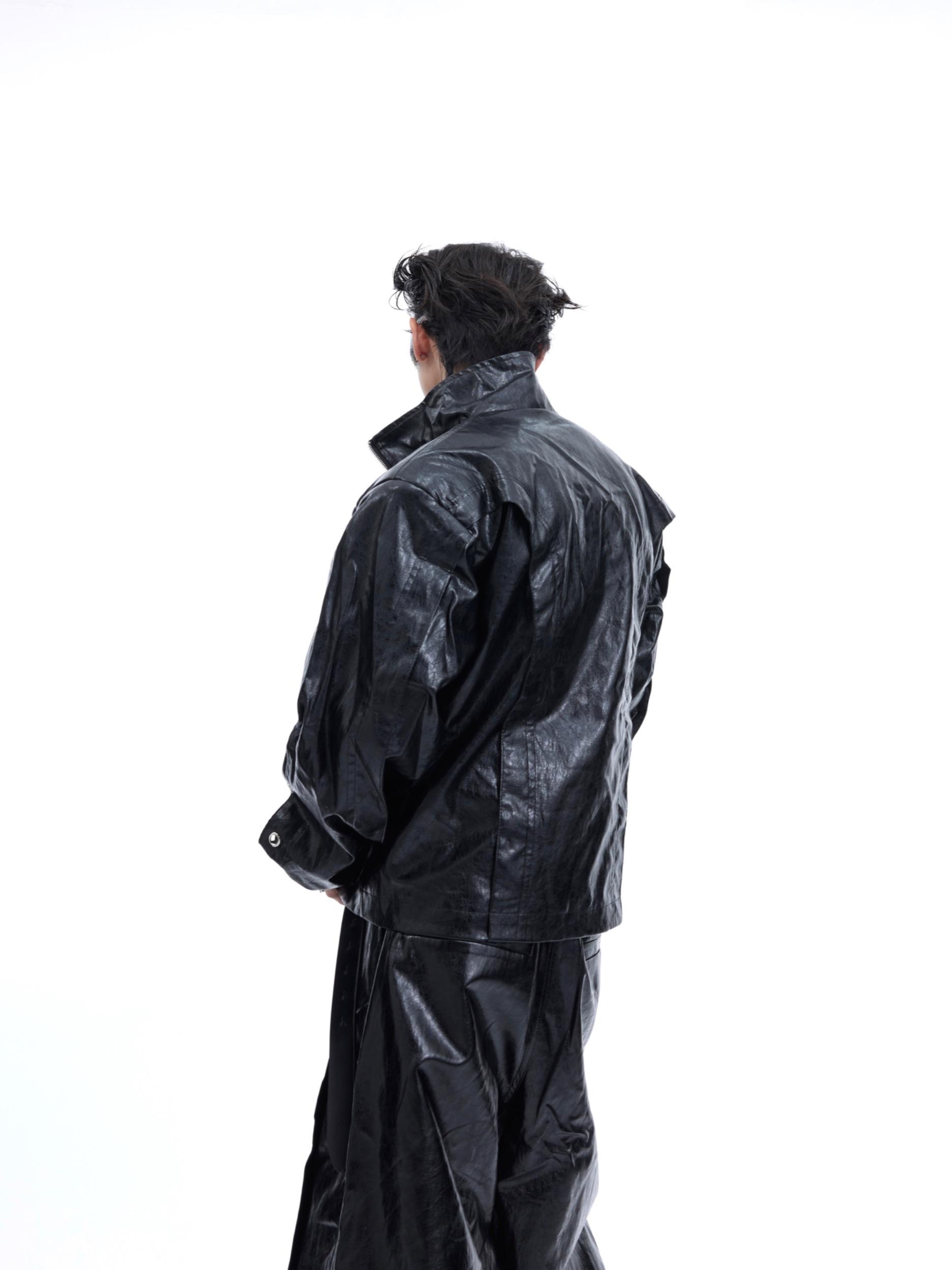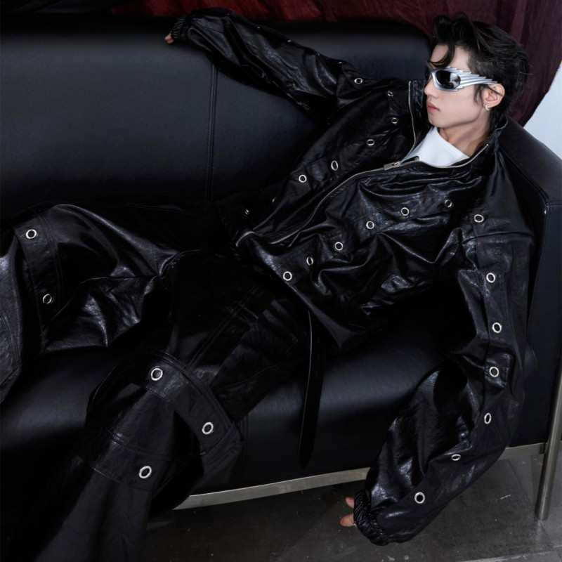 Niche Heavy Industry Paint Metal Ring Design Leather Coat Suit