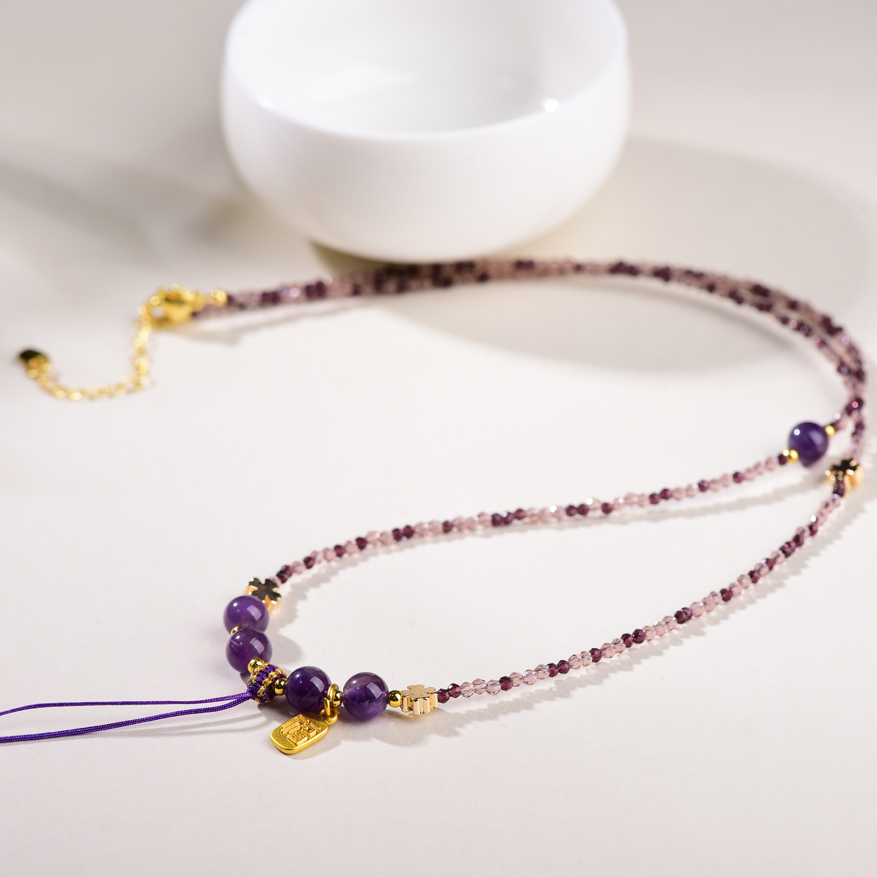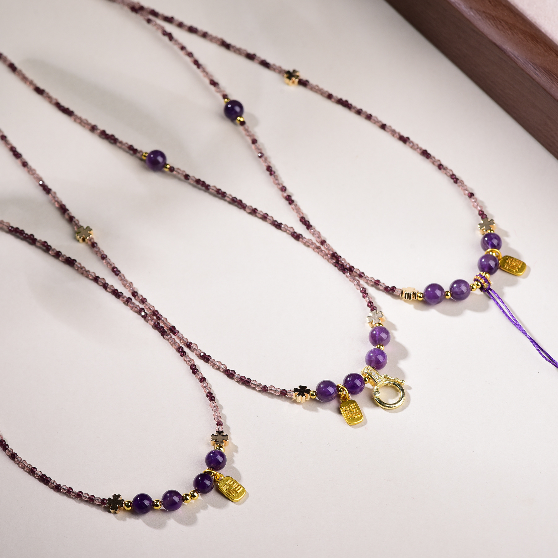 Colors: Amethyst [Clavicle Chain], Amethyst [Clip-On], Amethyst [Flat Knot], Amethyst [with Thangka]