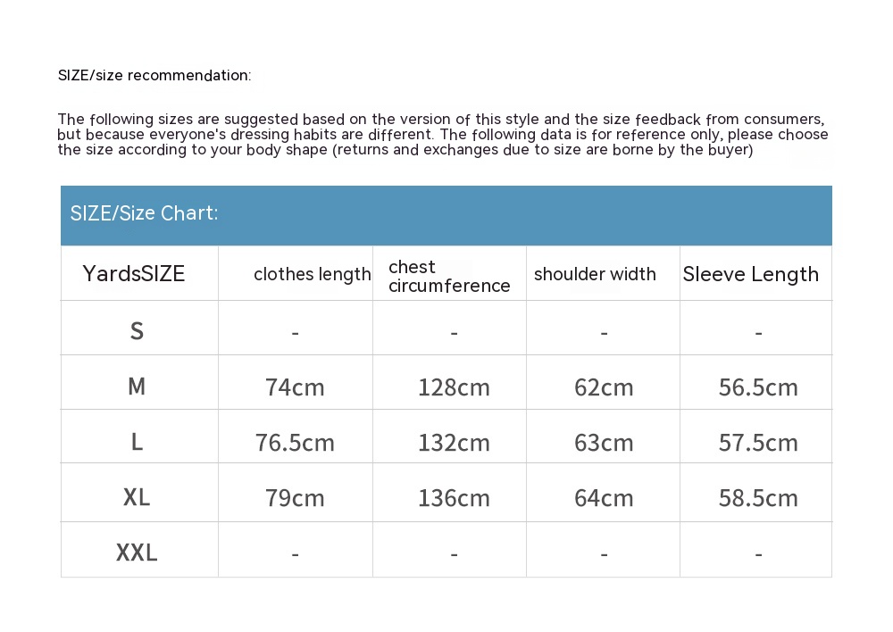 1. Asian sizes are 1 to 2 sizes smaller than European and American people. Choose the larger size if your size between two sizes. Please allow 2-3cm differences due to manual measurement. 2. Please check the size chart carefully before you buy the item, if you don't know how to choose size, please contact our customer service. 3.As you know, the different computers display colors differently, the color of the actual item may vary slightly from the following images.