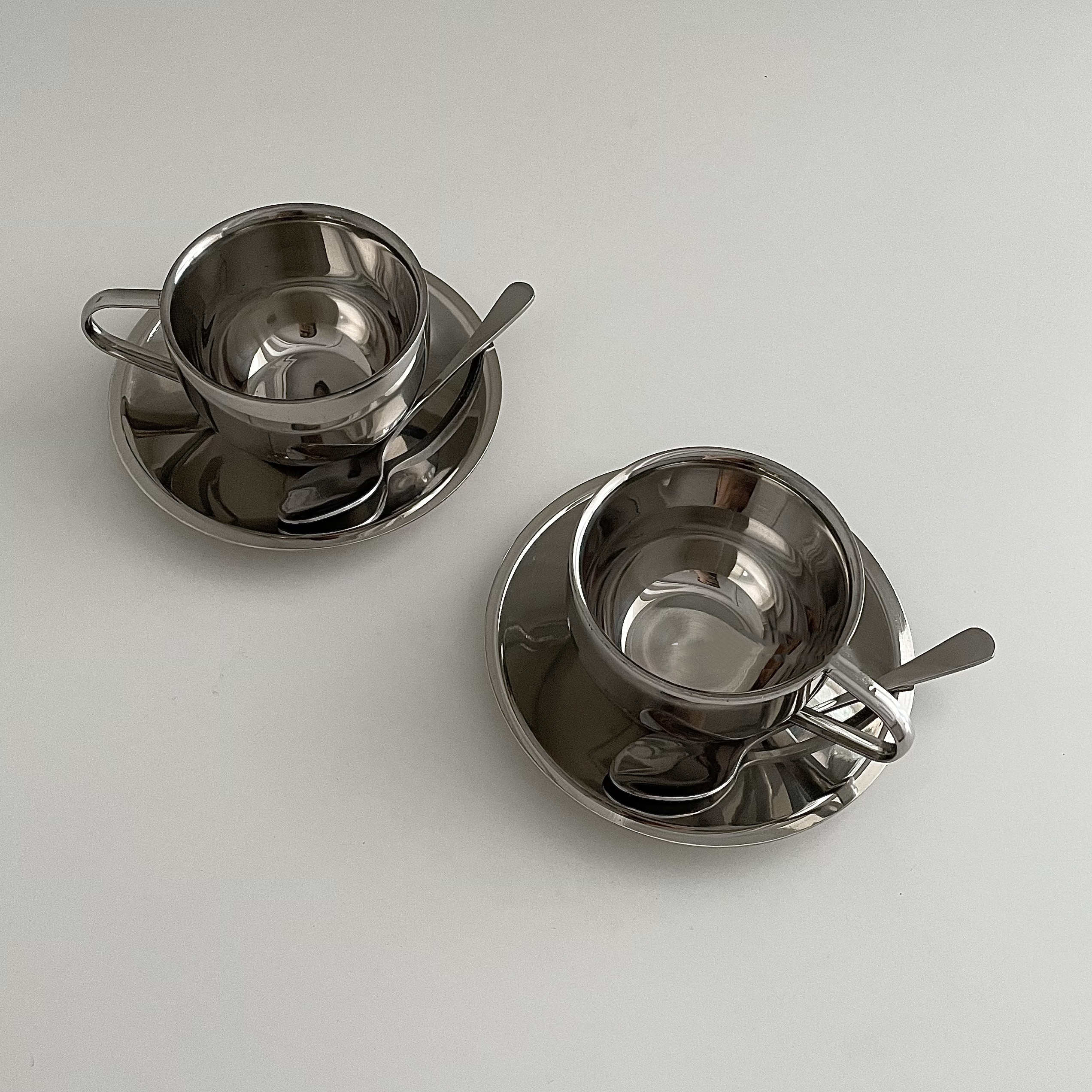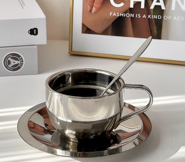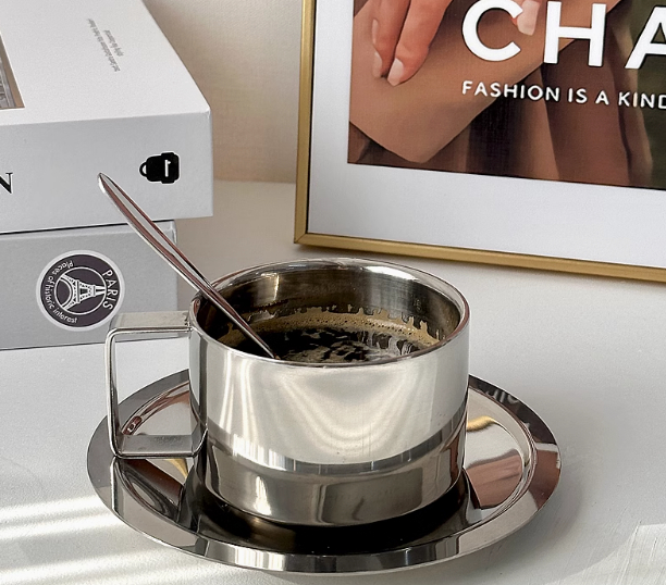 Color classification: 304-three-piece cup, saucer and spoon (round cup) 304-three-piece cup, saucer and spoon (flat-bottomed cup)