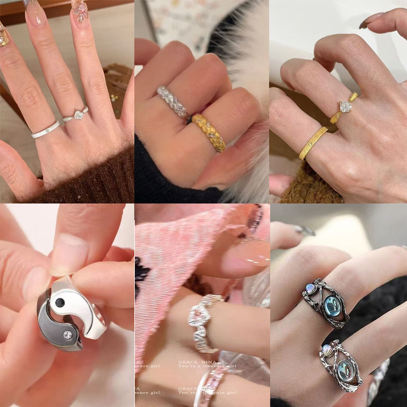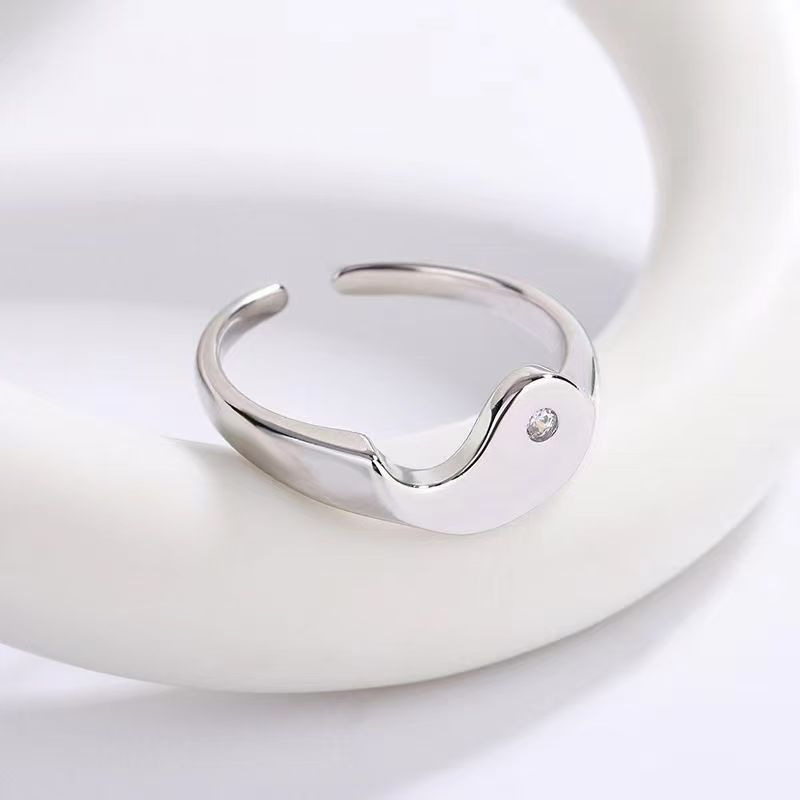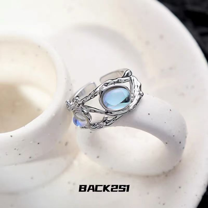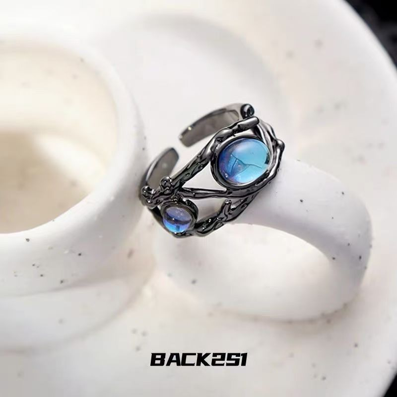 Niche Moonstone Black & White Couple Rings For Men & Women, Vintage Luxury Adjustable Open Band
