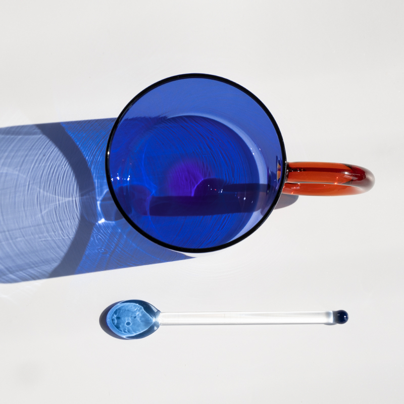 (C) Klein blue cup + spoon