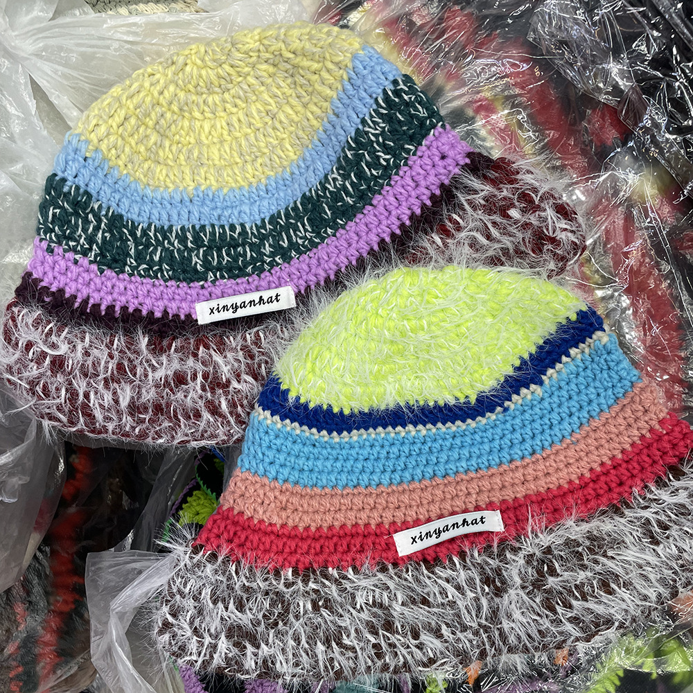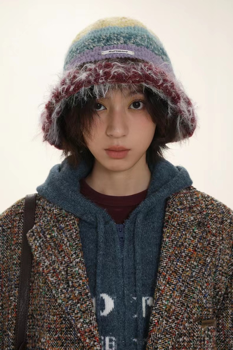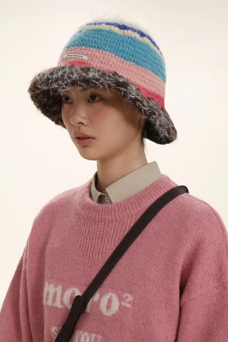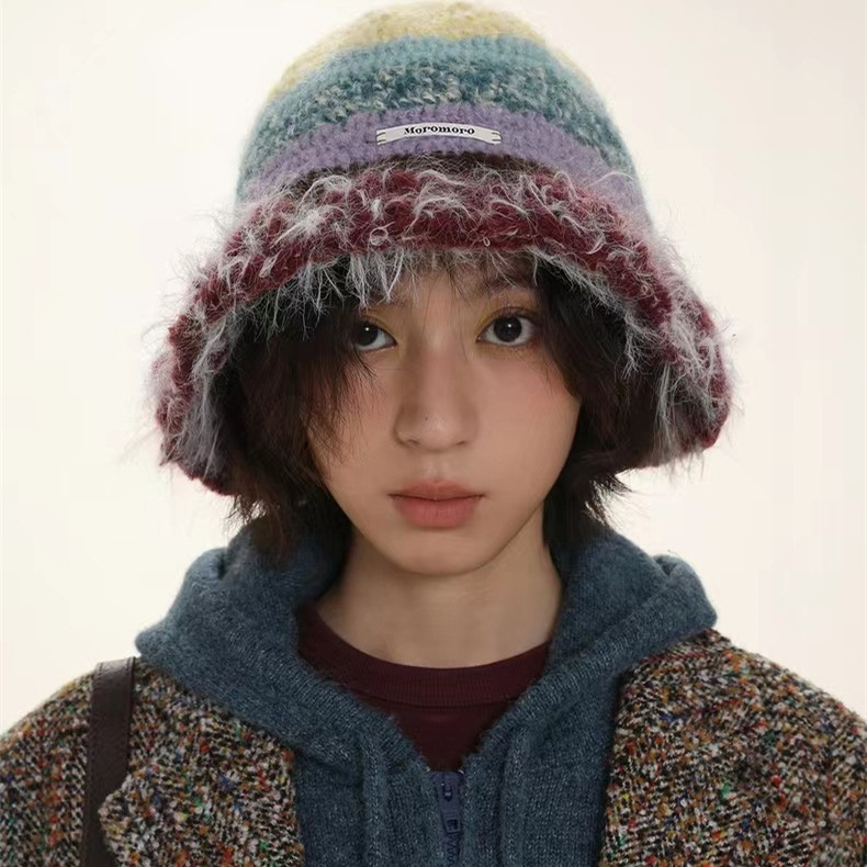 Niche Retro Contrast Color Stripes Hand Crocheting Woolen Cap