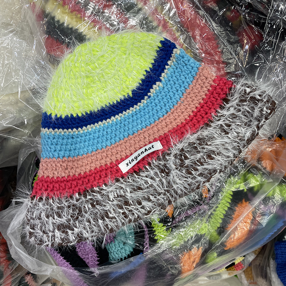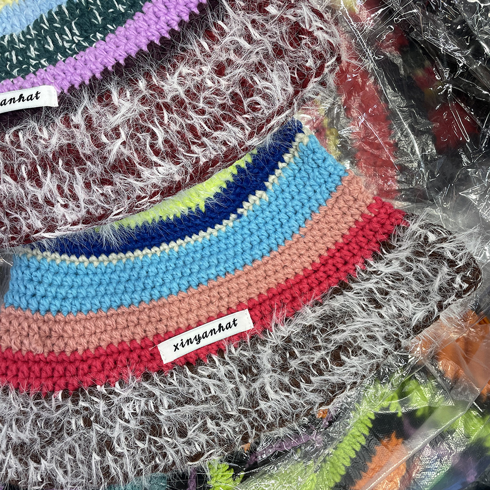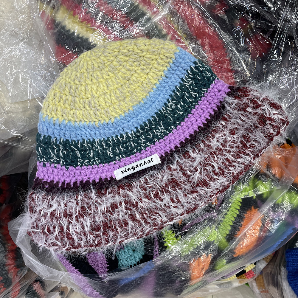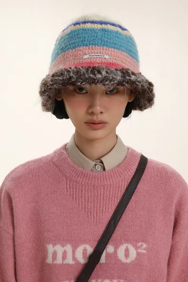 Niche Retro Contrast Color Stripes Hand Crocheting Woolen Cap