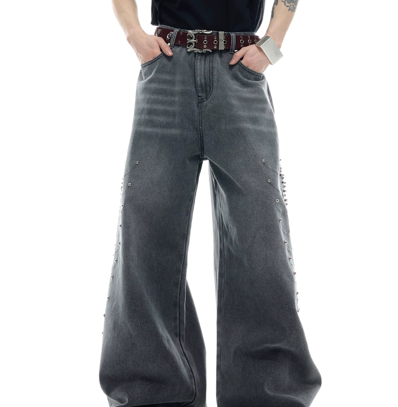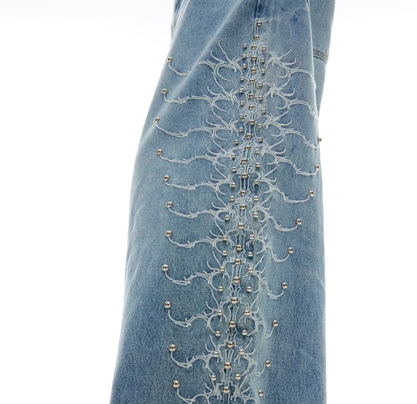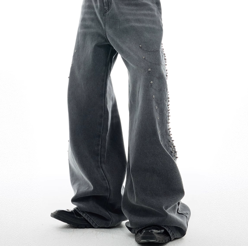 Niche Retro Washed Backbone Metal Rivet Design Jeans