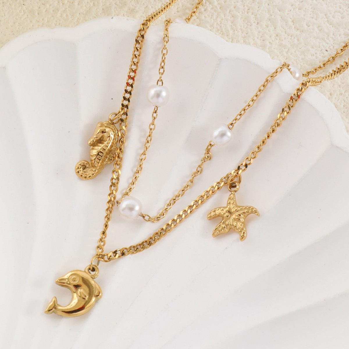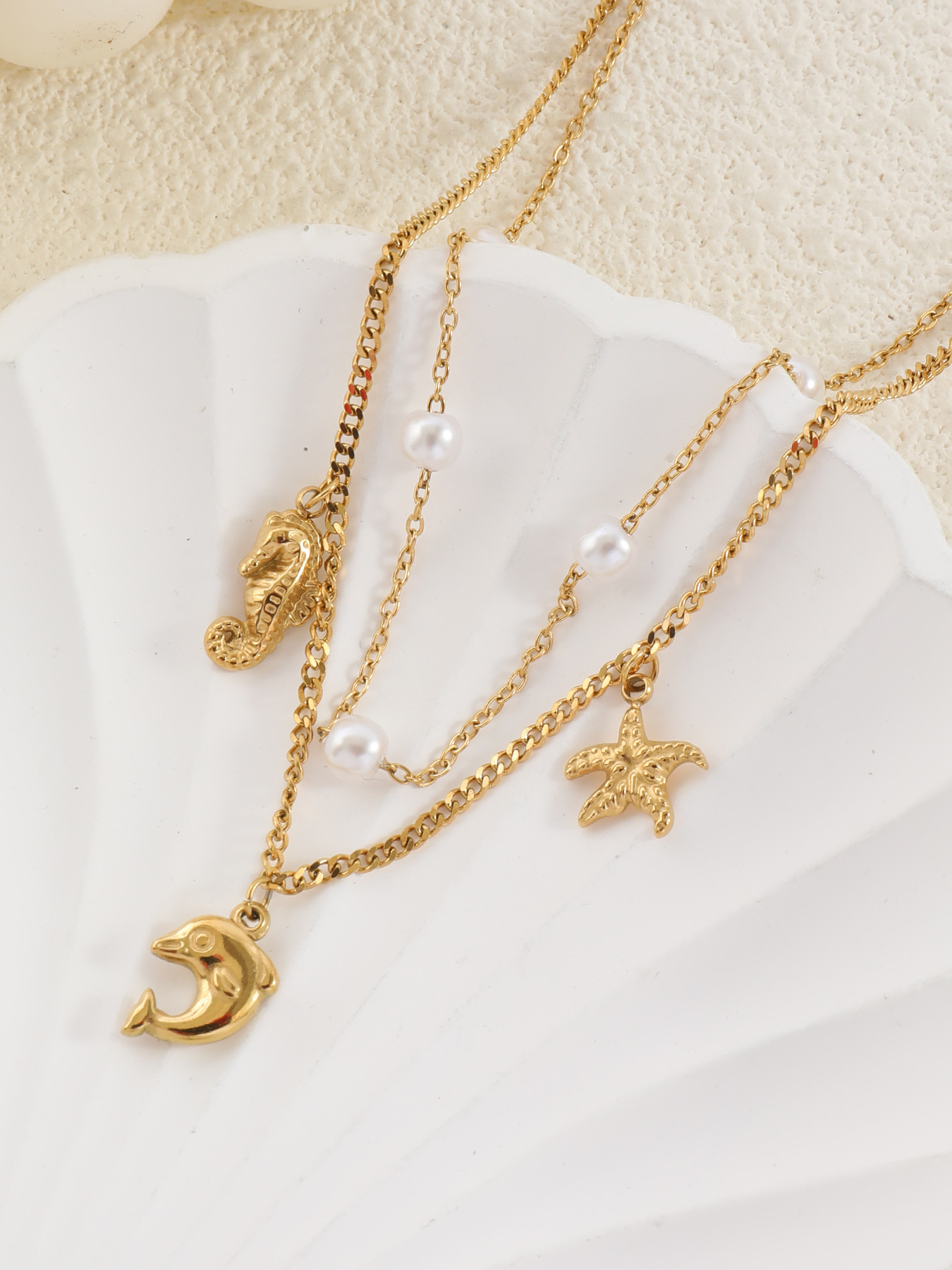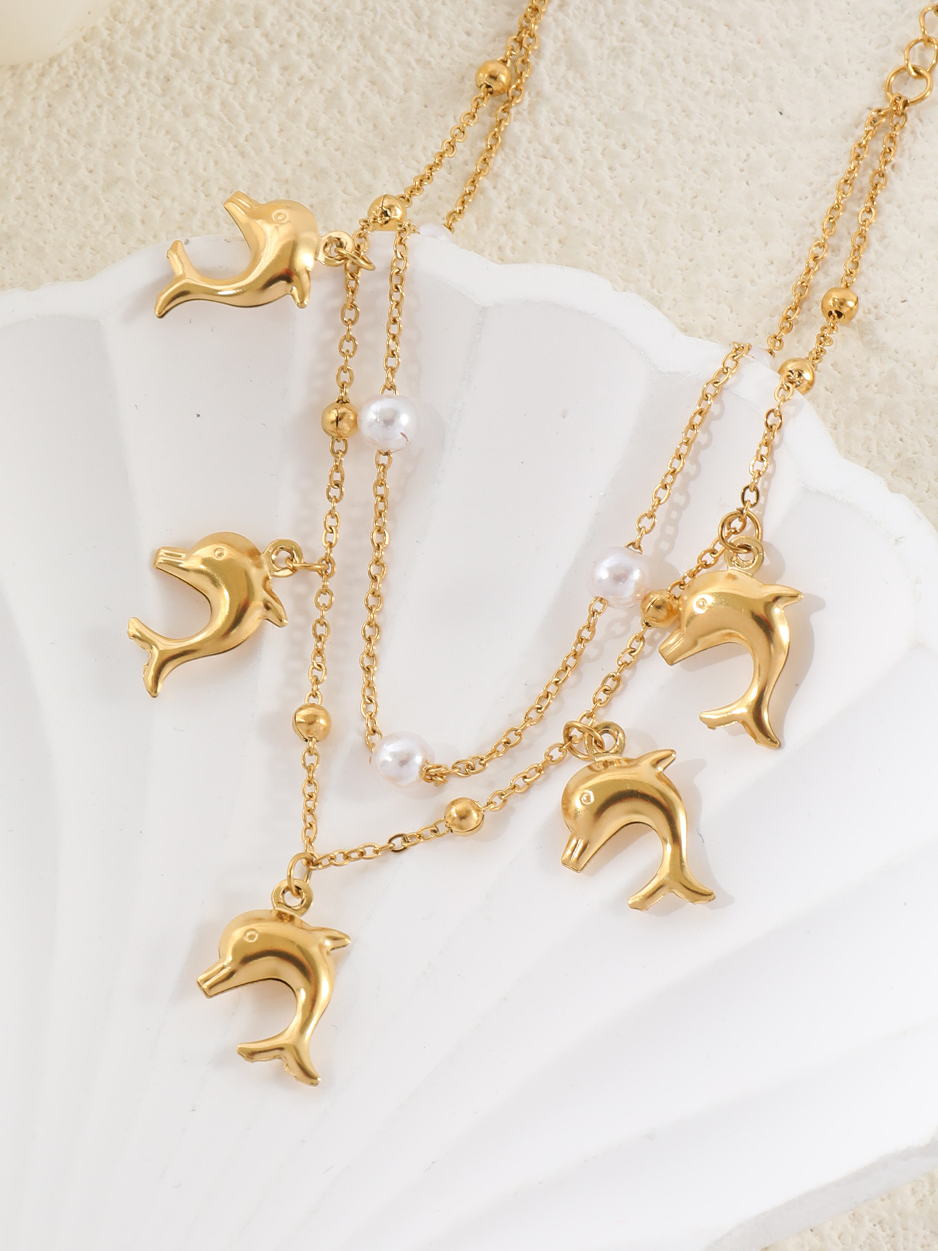 Color: pearl shell, bow, pink bow, three inlaid zirconium bow, dolphin, conch, five dolphins, white shell love