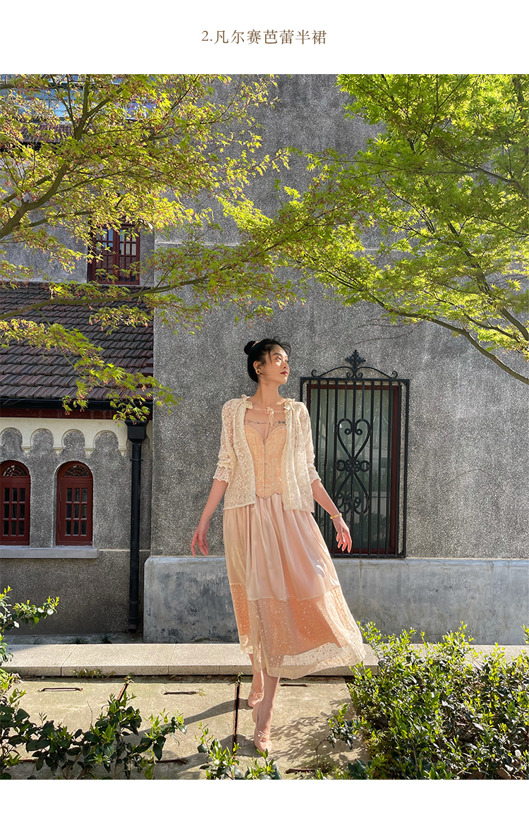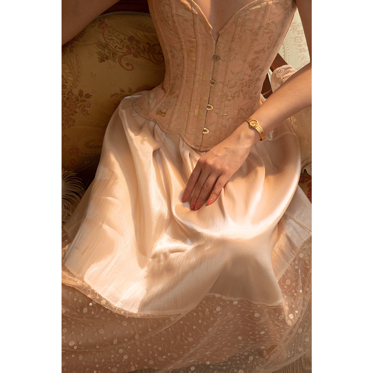 Niche Thin French Pink Jacquard Fish Bone Corset
