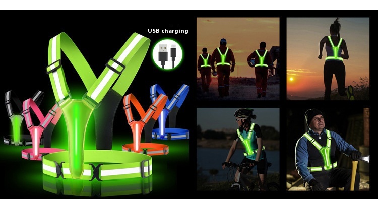 Night Running And Cycling Reflective Vest With Rechargeable Glow
