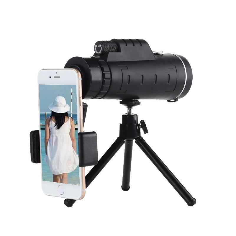 Specifications: 40X60 telescope neutral standard + compass + universal mobile phone camera holder + telescopic tripod