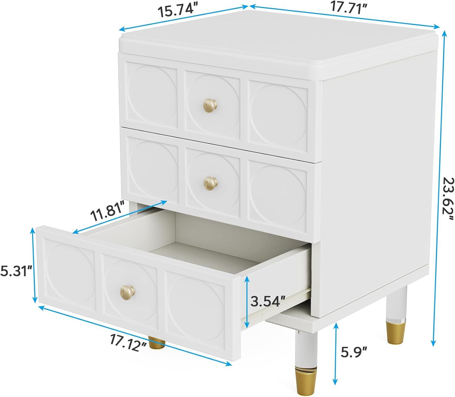 [Chic White Finish with Luxurious Gold Accents]- The Tribesings white and gold nightstands feature a stylish white finish complemented by opulent gold detailing on the handles and acrylic legs, making for a stunning blend of modern elegance