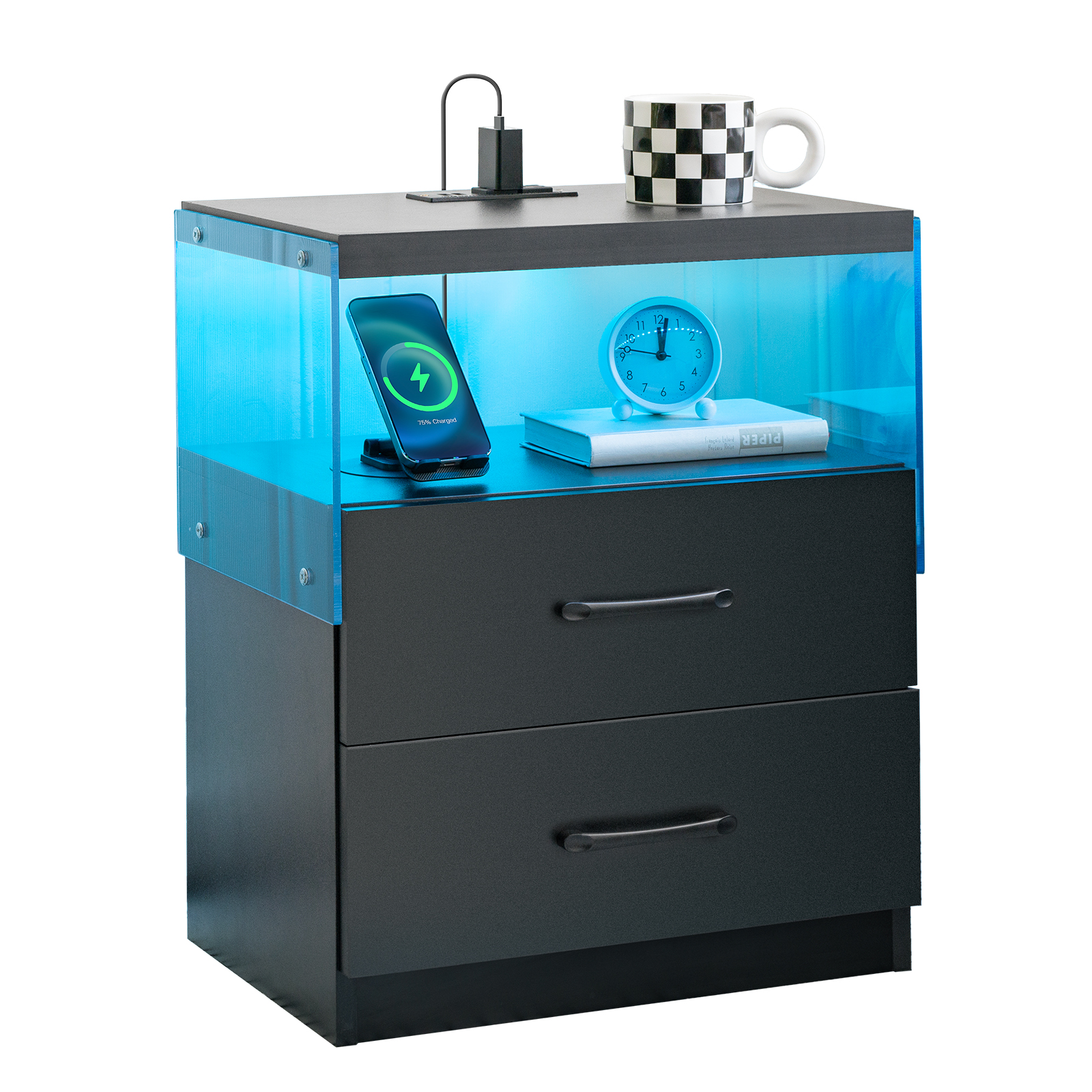 Product Name:Nightstand with LED Lights, Adjustable Light Colors, Bedside Table, Side Table with 2 Drawers,Black