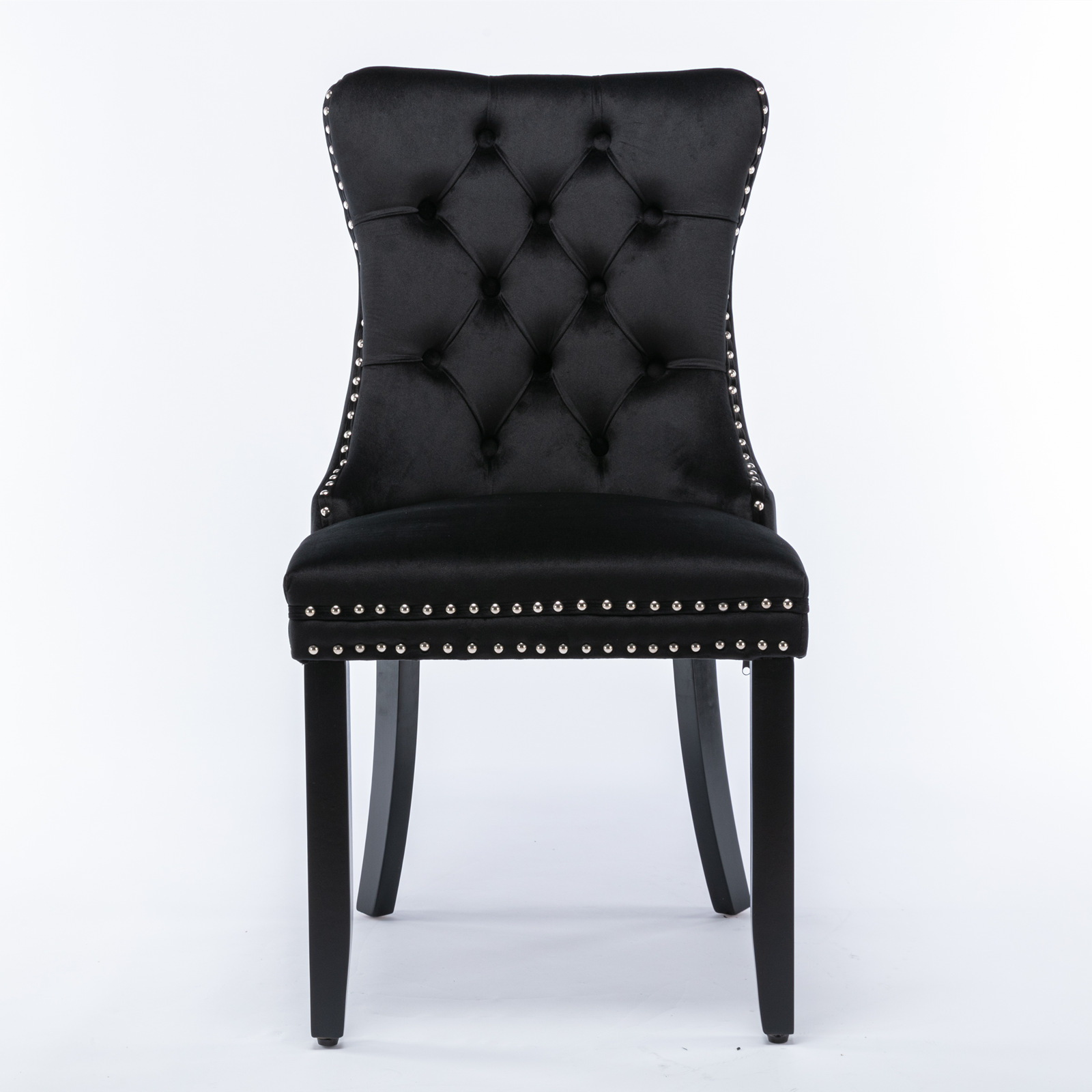 Product Name:Nikki Collection Modern, High-end Tufted Solid Wood Contemporary Velvet Upholstered Dining Chair with Wood Legs Nailhead Trim 2-Pcs Set, Black, SW2001BK