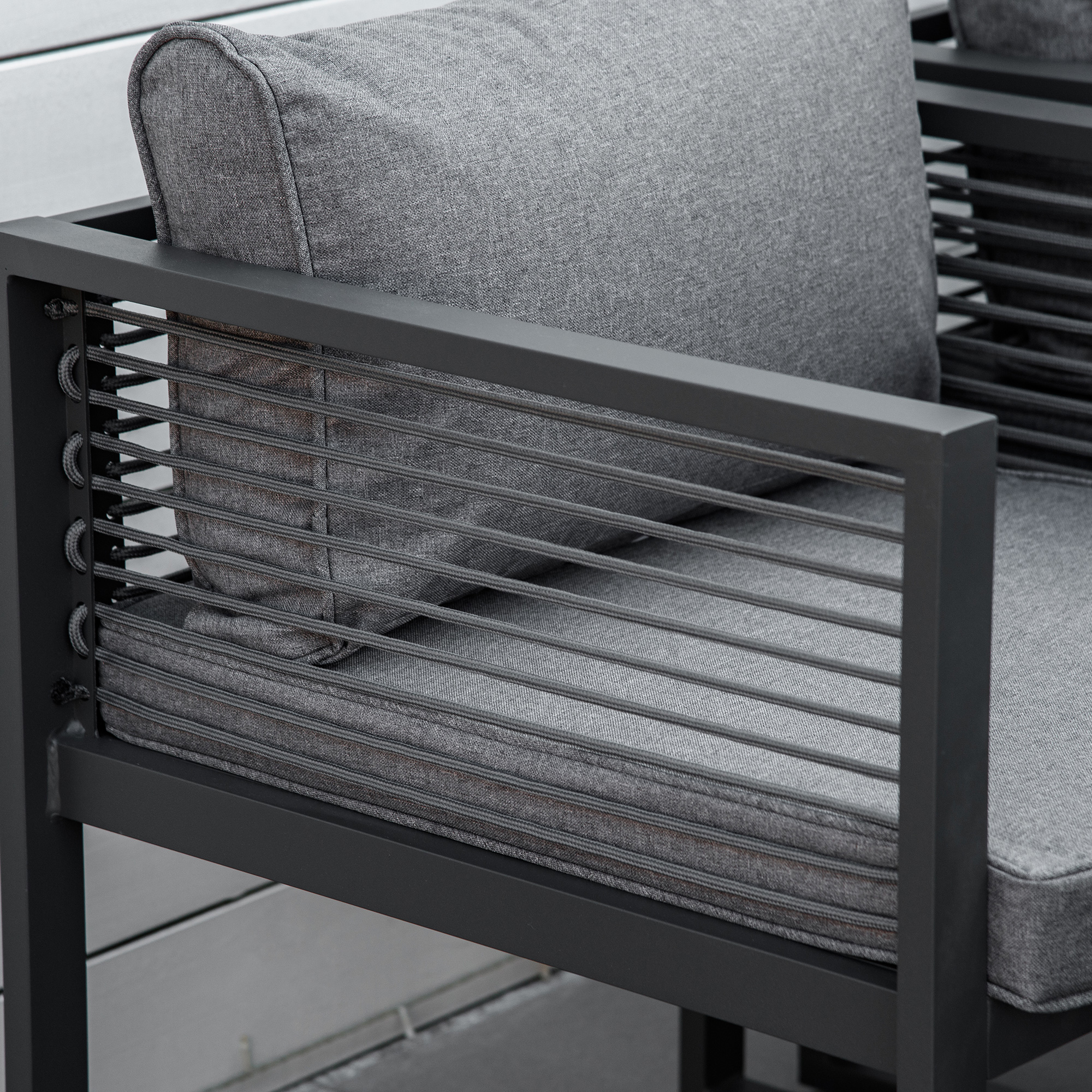 • Rope decoration on the chair arms and backs for distinct character