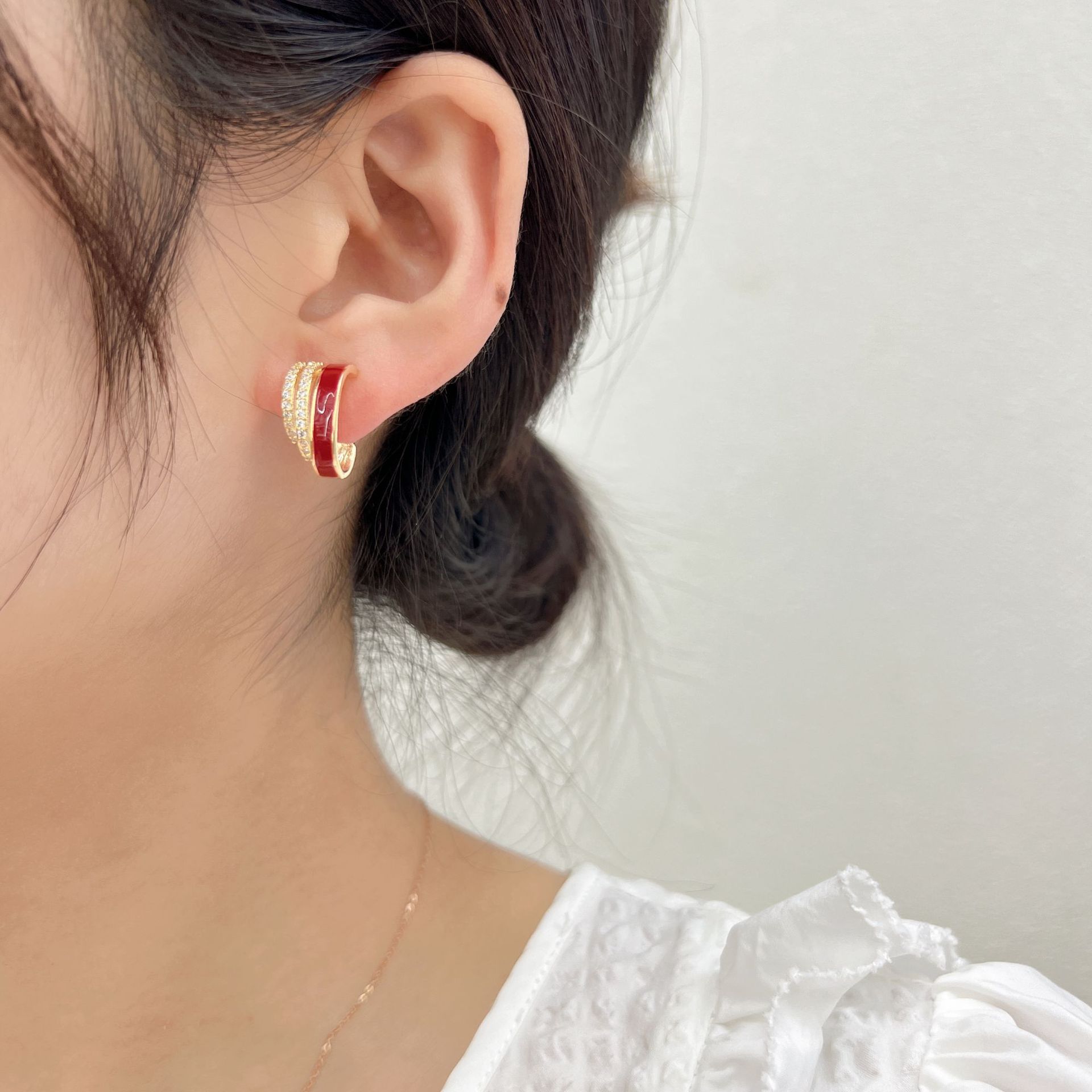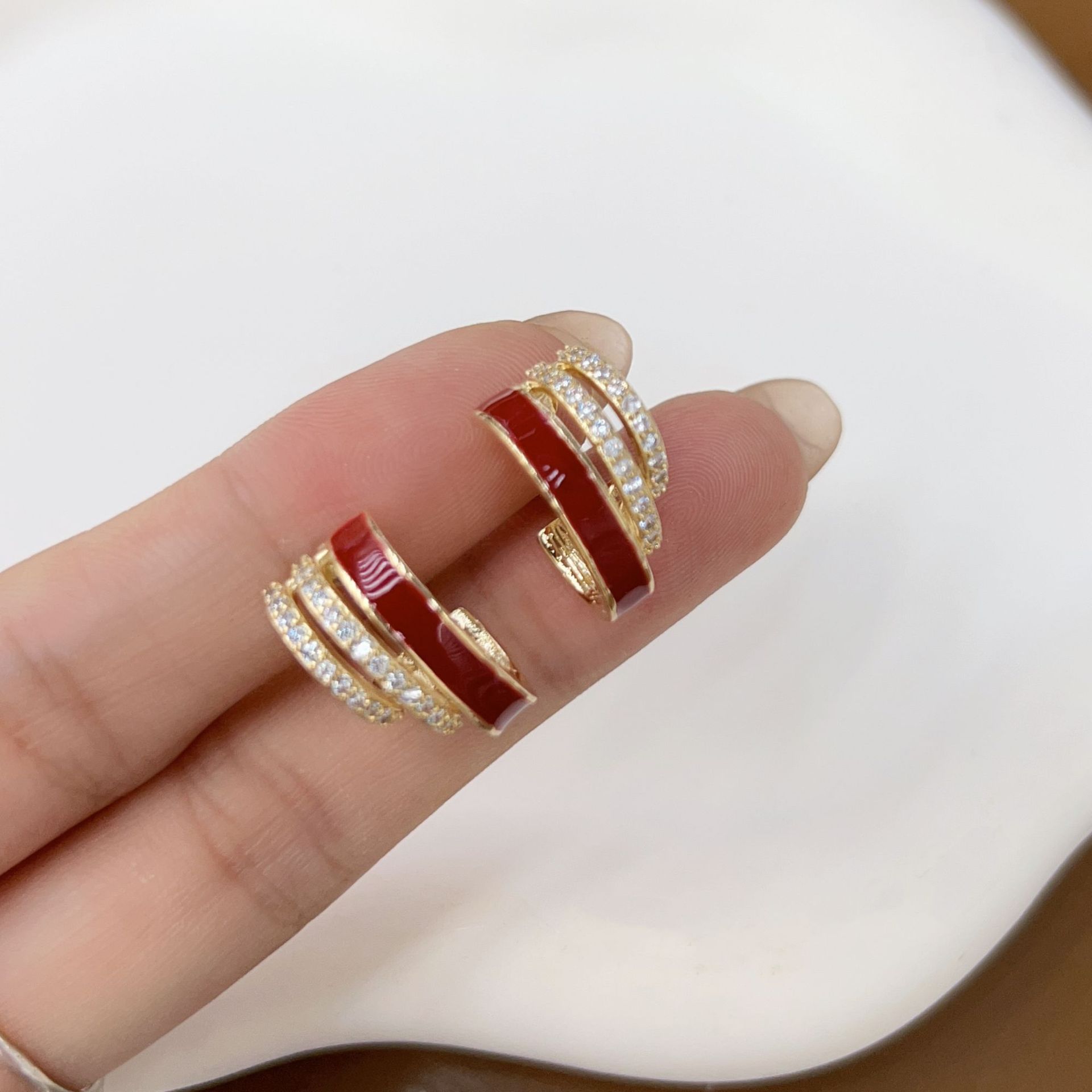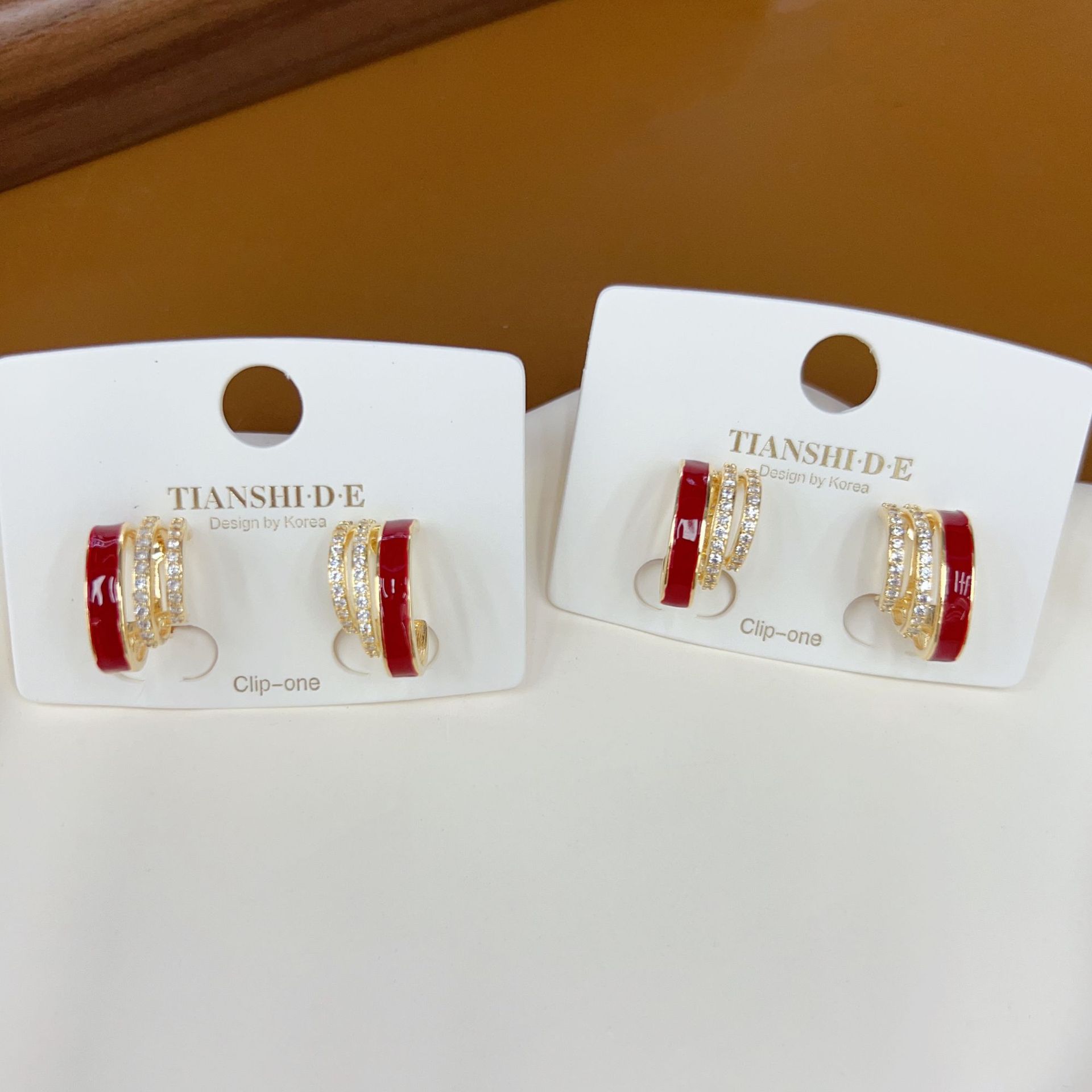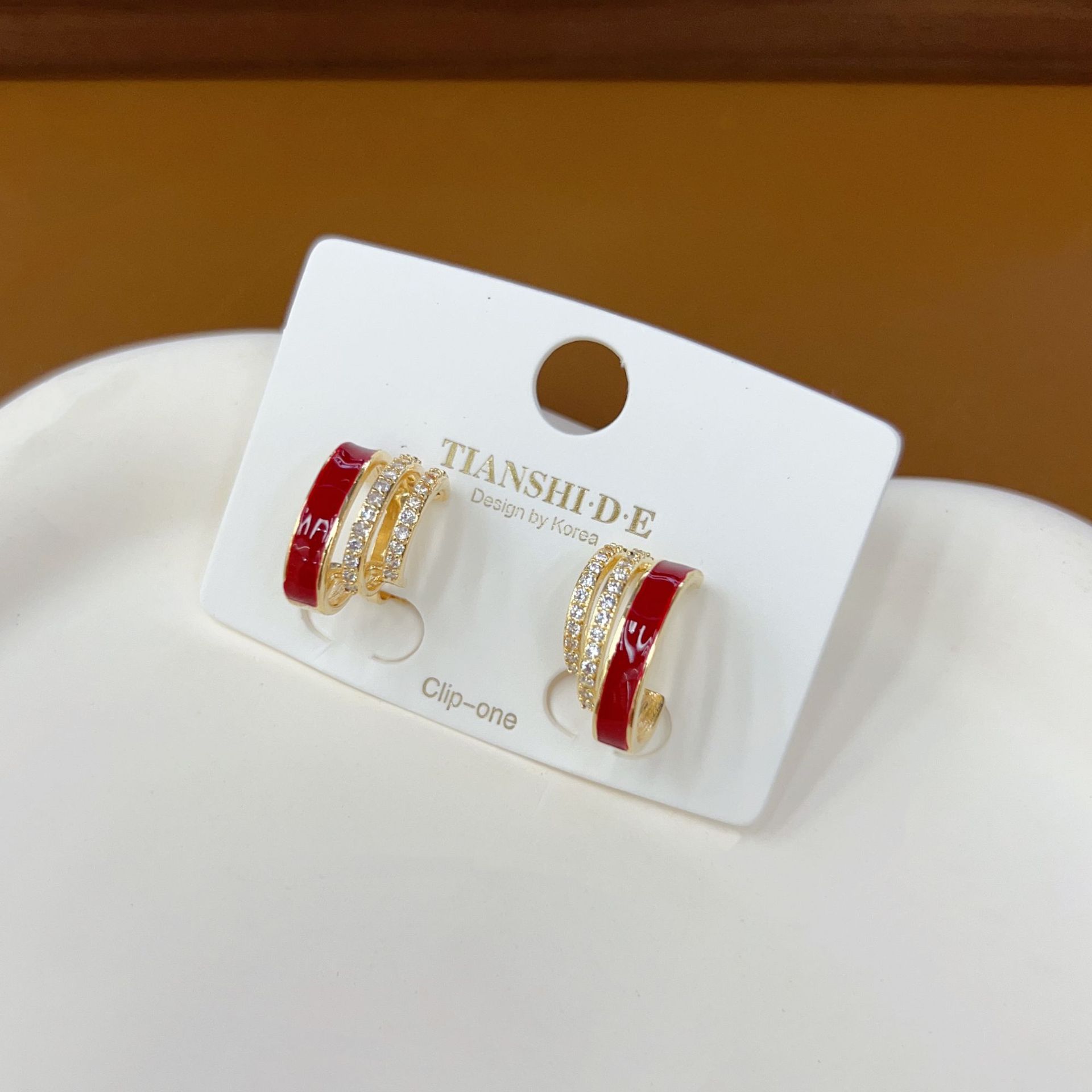 Color: red no piercing ear clip, white no piercing ear clip, red silver needle, White Silver Needle