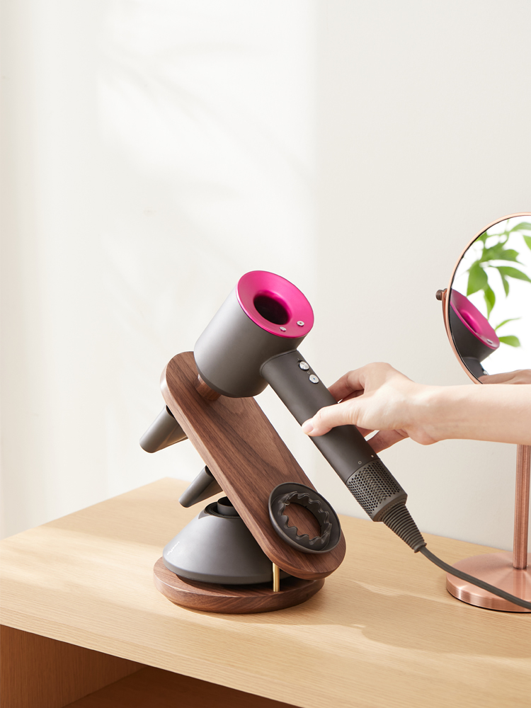 No Punching Vertical Solid Wood Hair Dryer Bracket Rack