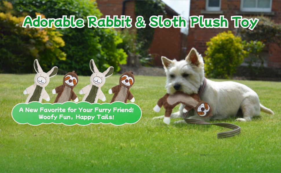 【Interactive Dog Toys】 Your dog will fall in love with the plush, cuddly texture of our toys. Perfect for both active play and cozy naptime cuddles, the adorable rabbit and sloth characters are designed to be more than just toys—they become cherished companions that provide comfort and joy to your pet's daily routine.