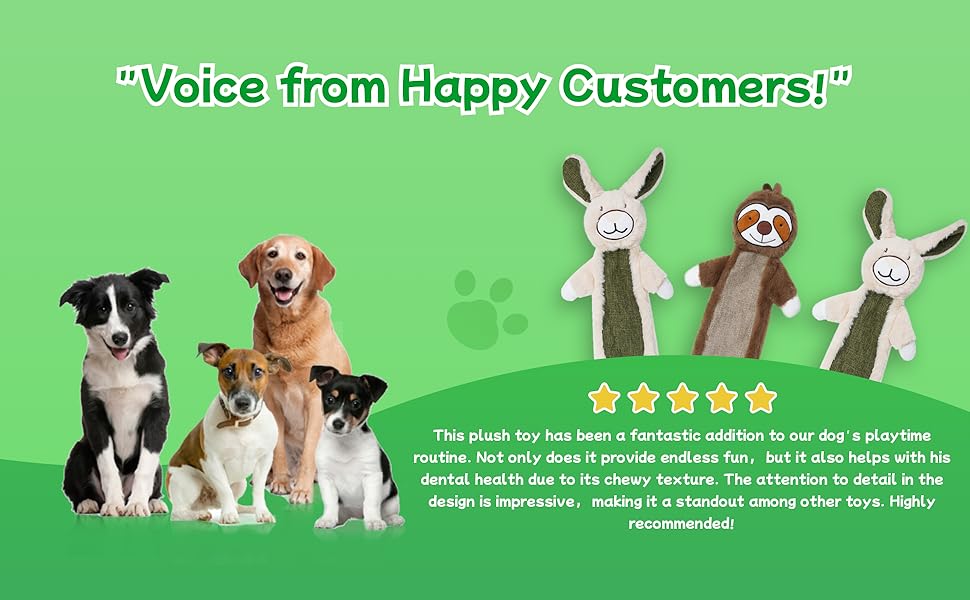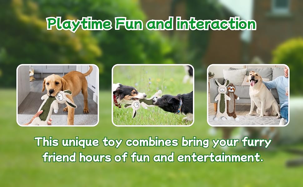 【Unbreakable Plush Squeaky Dog Toys】Our No Stuffing Crinkle Dog Toys are designed to ignite your dog's playful spirit. Featuring charming rabbit and sloth designs, these toys are crafted to engage your pet in interactive play sessions that cater to their natural instincts. Whether it's a game of tug-of-war or fetch, these toys promise hours of fun-filled antics that strengthen the bond between you and your furry companion.