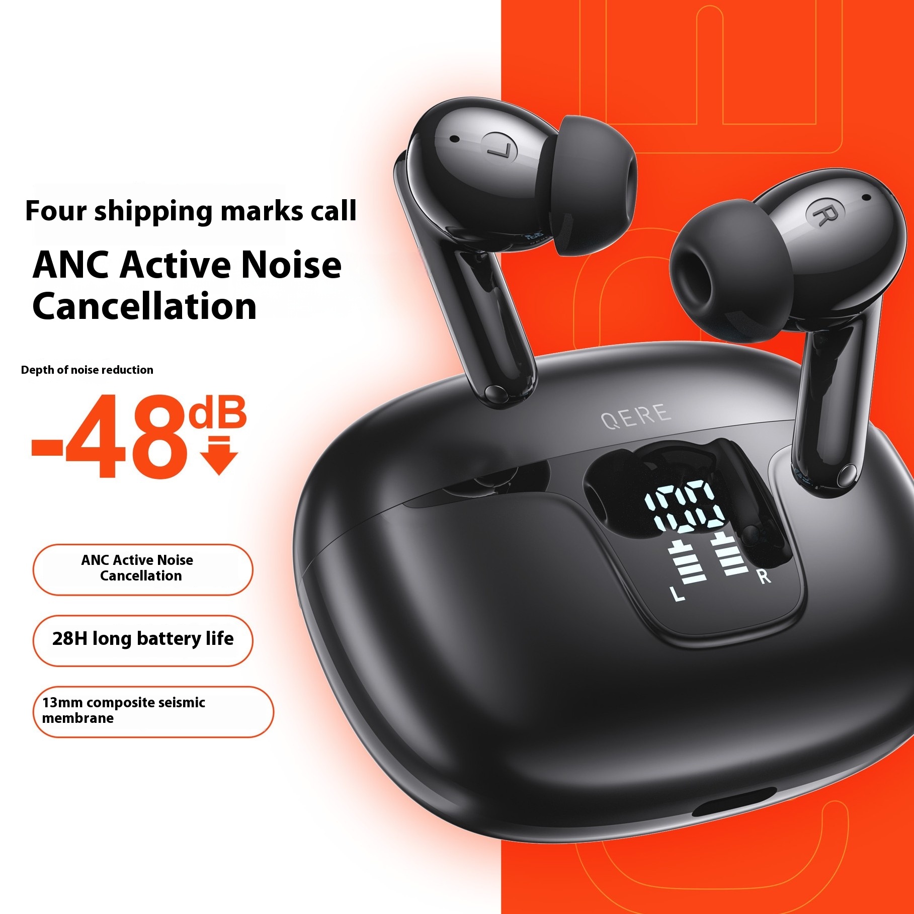 Function: noise reduction, ultra-long life battery, call function, support music, digital display screen, e-sports low latency