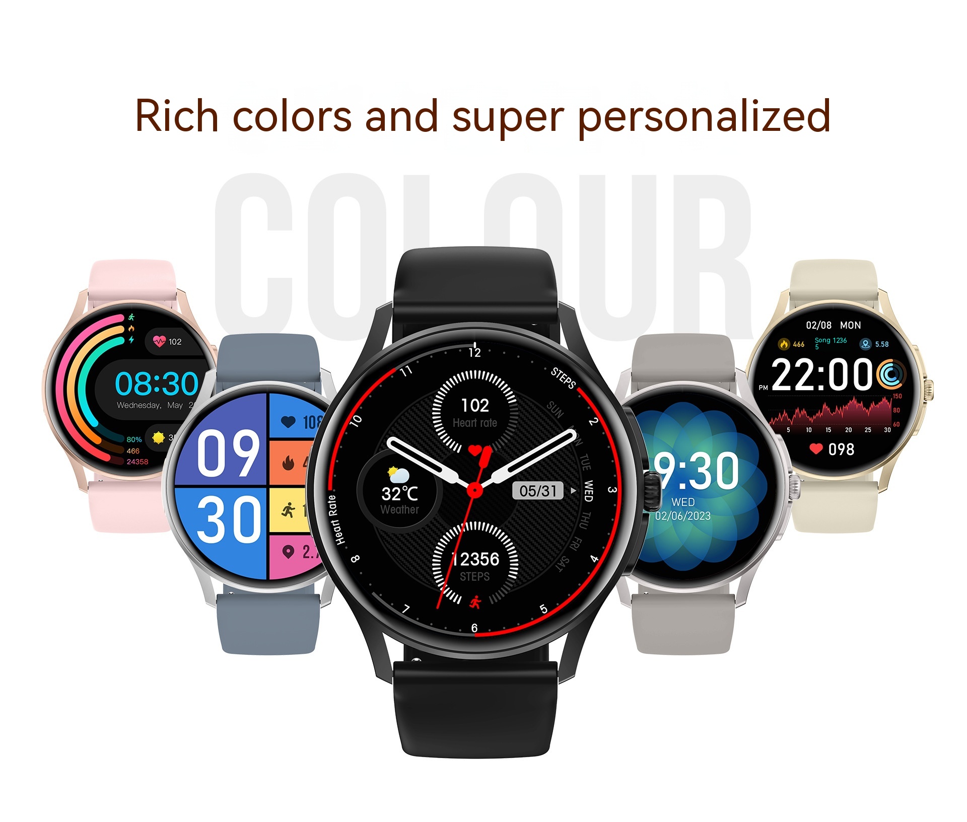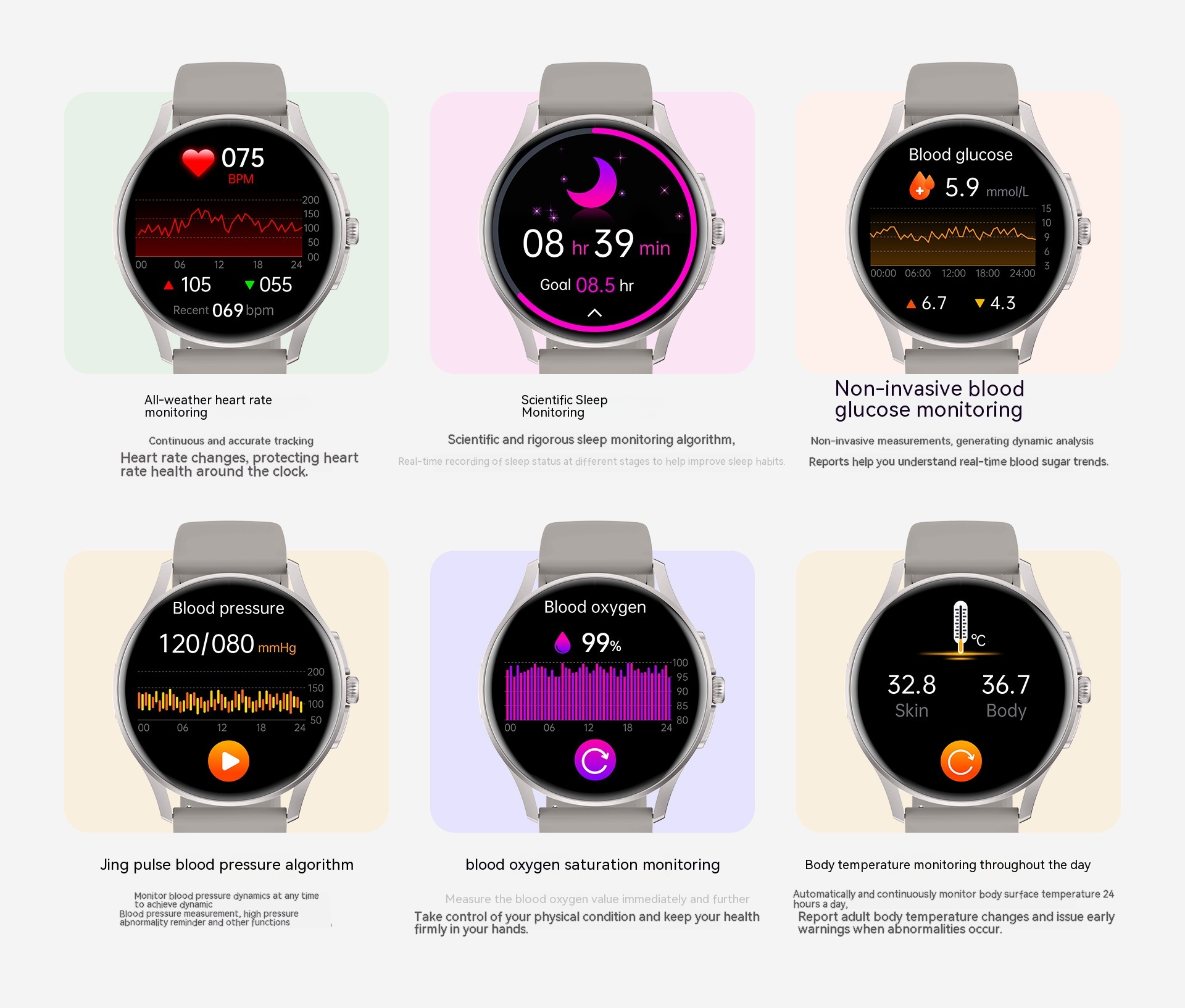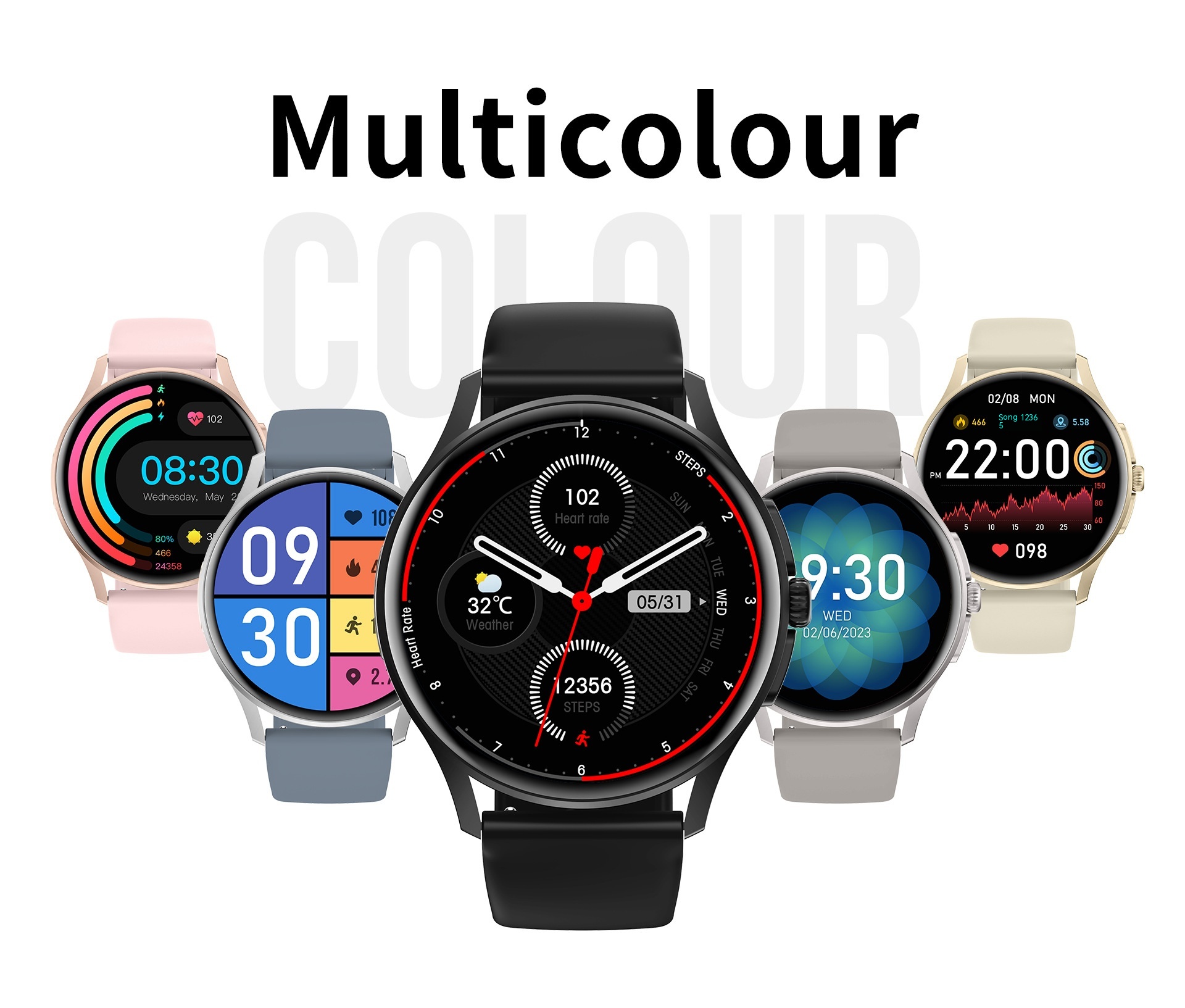 Functions: Waterproof, step counting, heart rate monitoring, blood pressure measurement, social entertainment, Bluetooth calling, smart reminder, remote control selfie, sleep monitoring, blood oxygen detection
