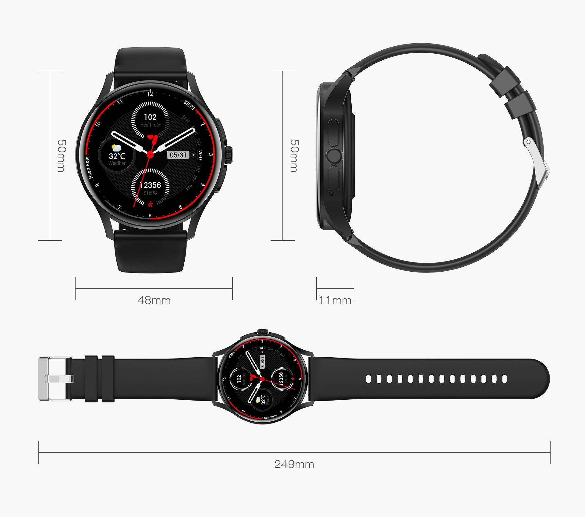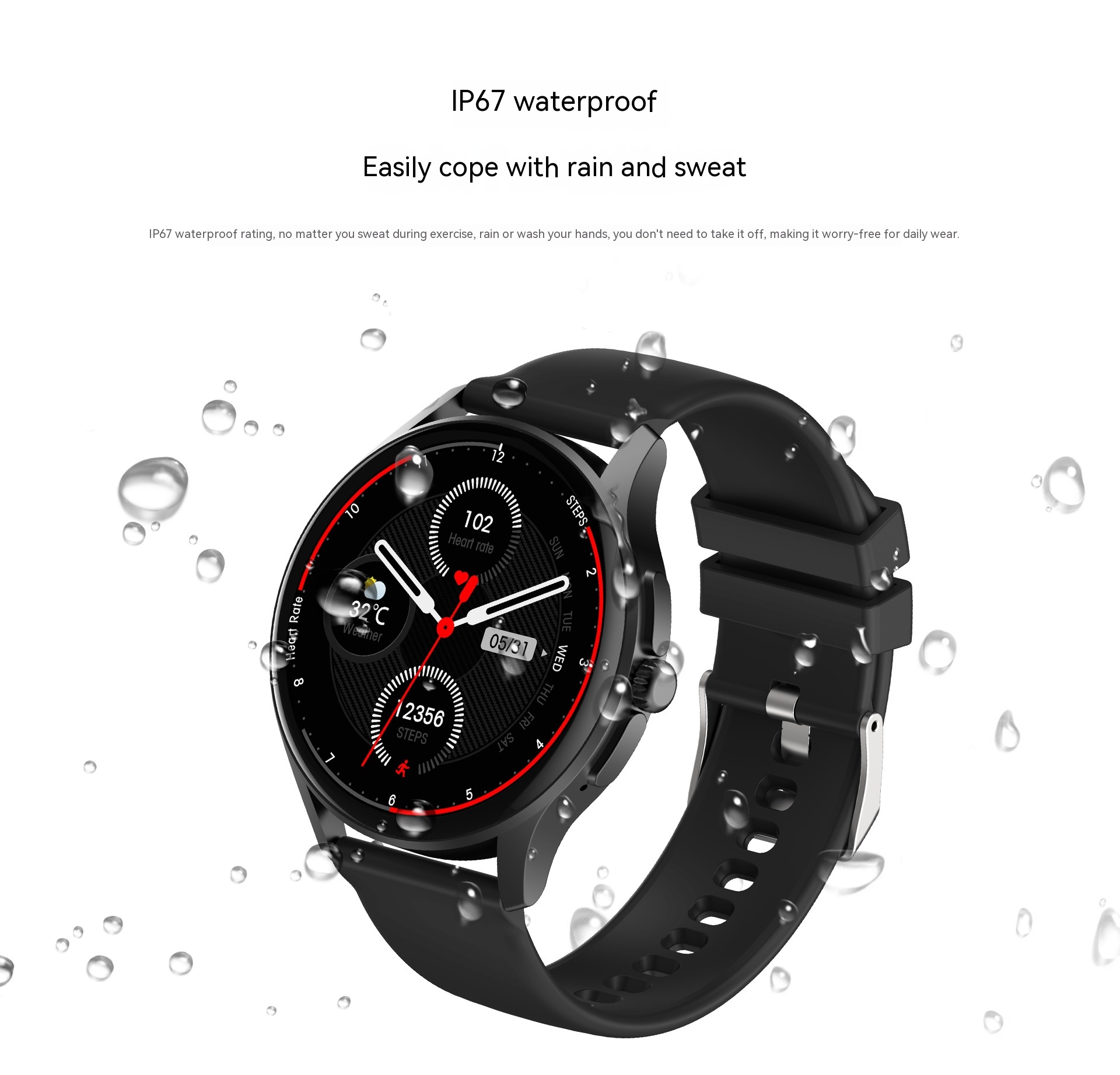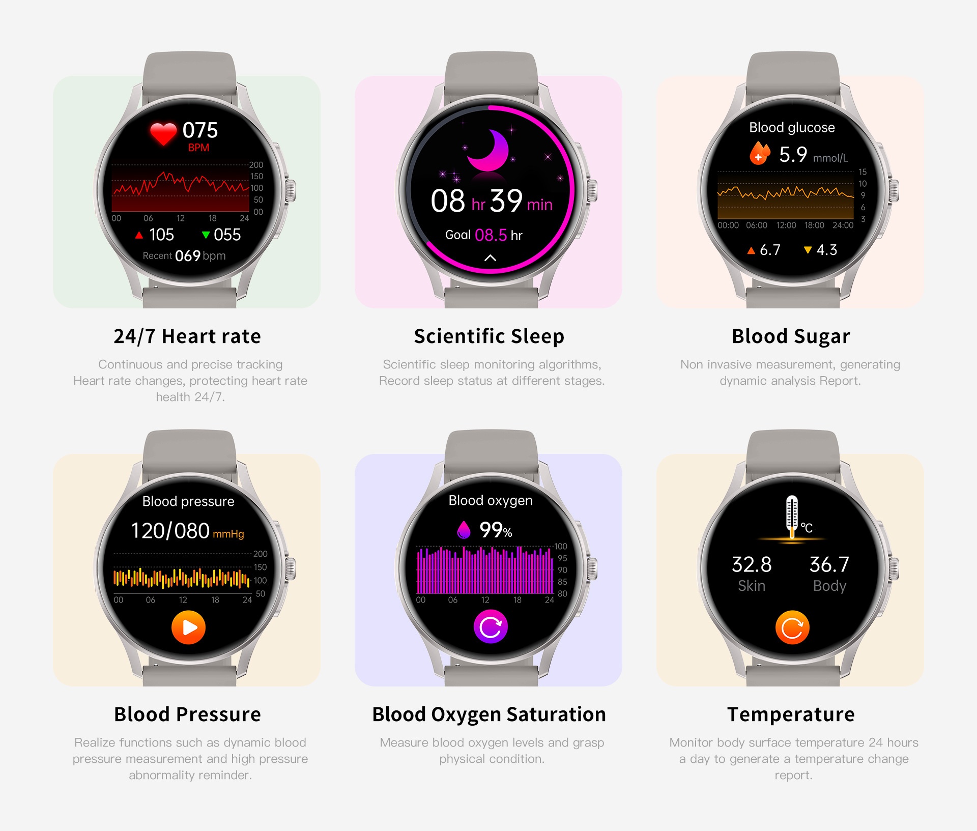 Functions: Waterproof, step counting, heart rate monitoring, blood pressure measurement, social entertainment, Bluetooth calling, smart reminder, remote control selfie, sleep monitoring, blood oxygen detection