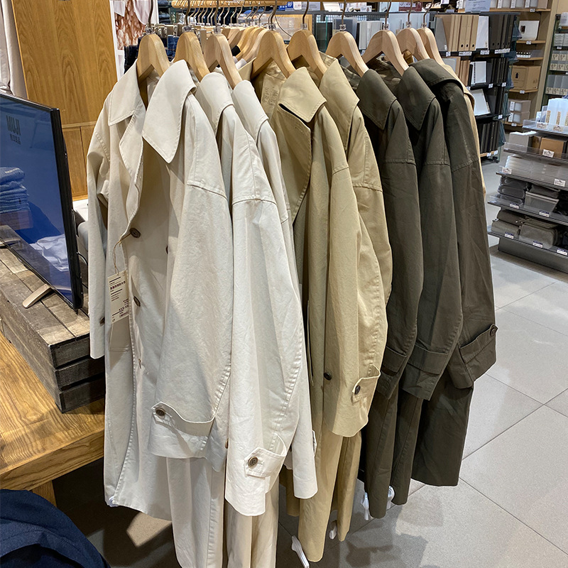 Color: dark beige [cotton double breasted trench coat], smoky green [cotton double breasted trench coat], gray brown [cotton double breasted trench coat], ivory white [cotton double breasted trench coat]]